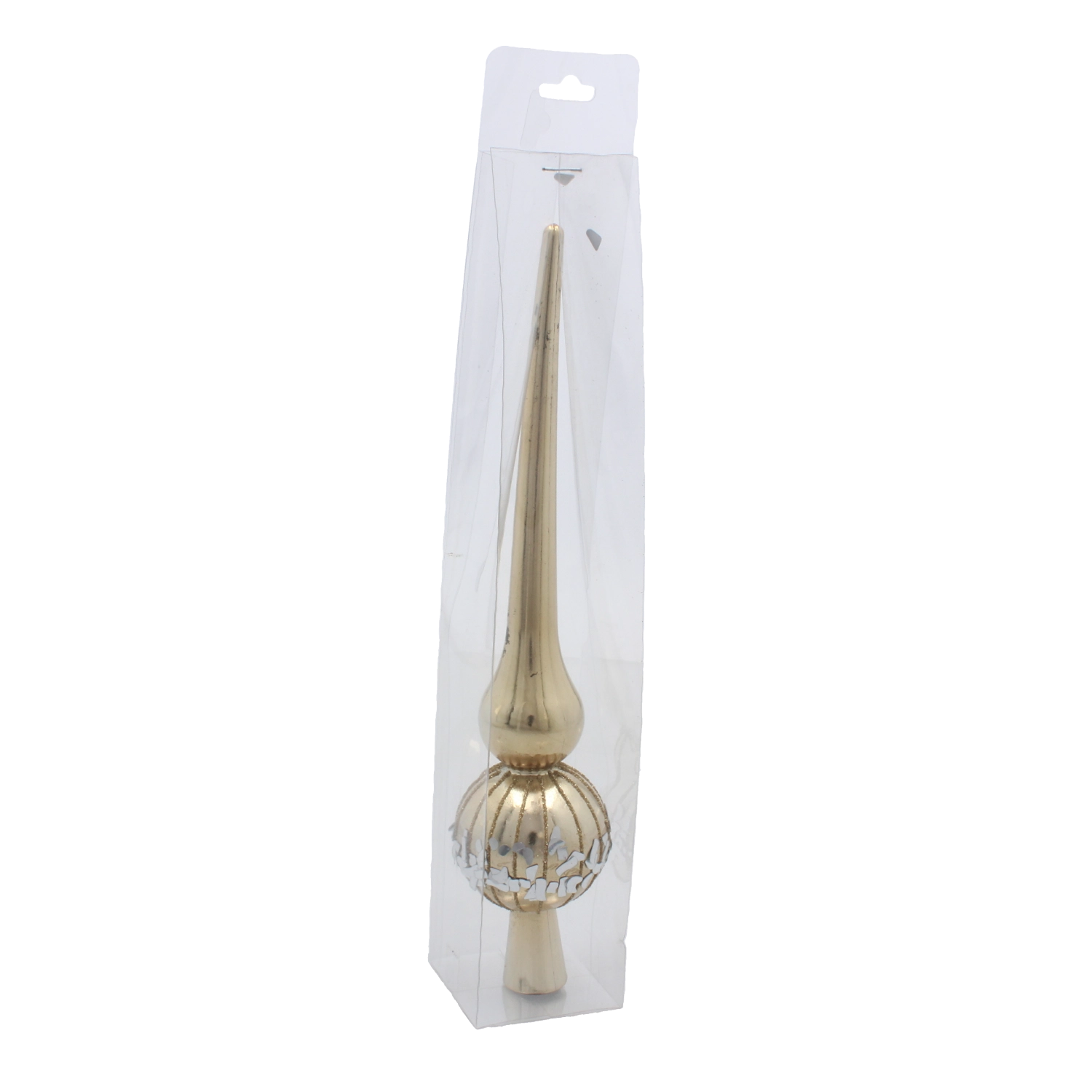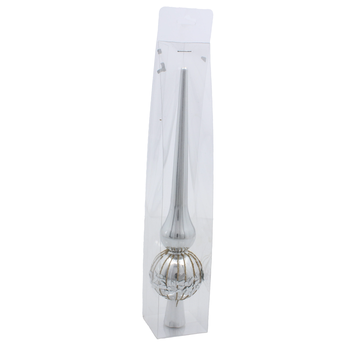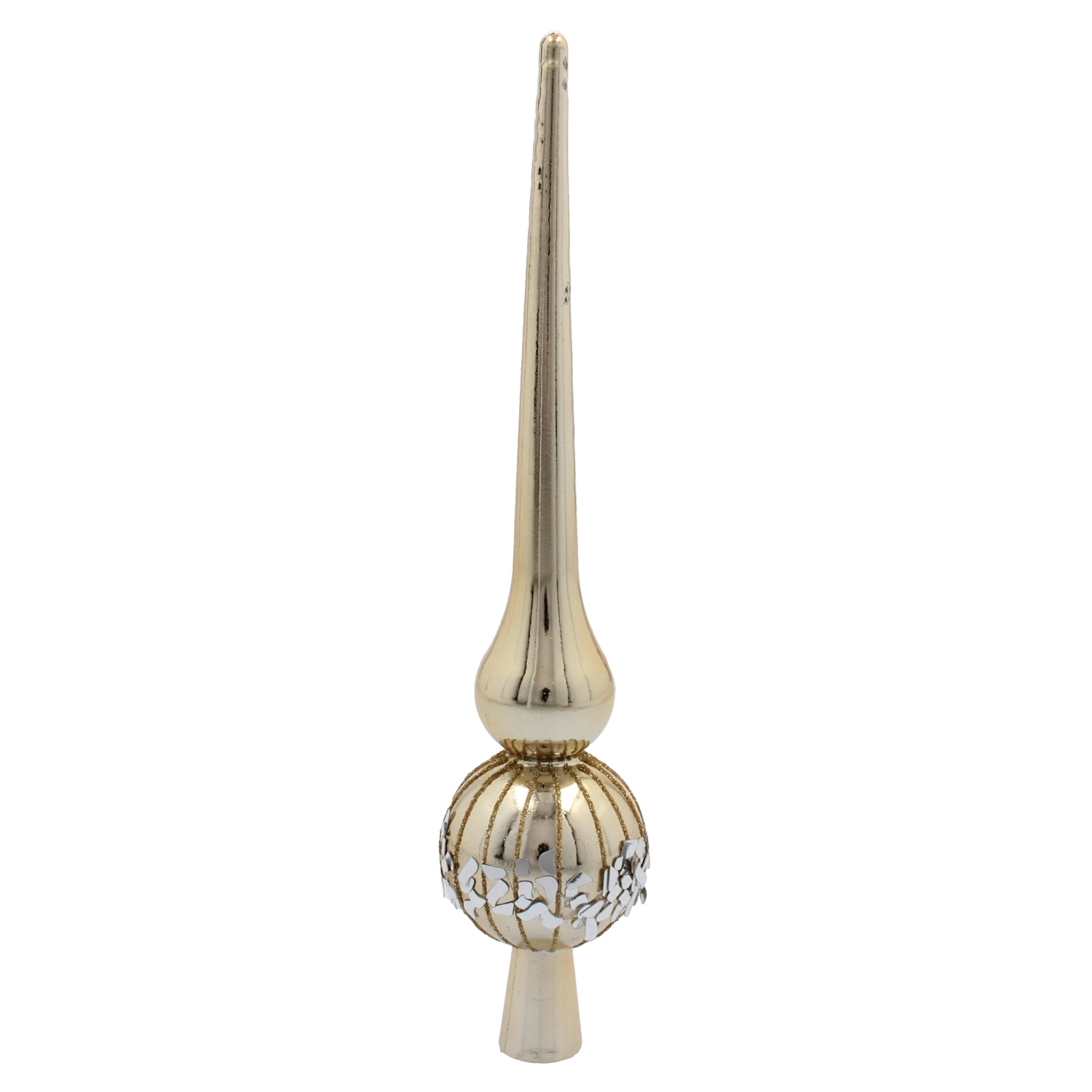 Tegye fel a fára az ünnepi koronát egy elegáns, 25 cm magas üveg csúccsal. Kézzel fújt és festett dísz ezüst, arany vagy piros színben, amely gyönyörűen veri vissza a fényt és varázslatos ünnepi hangulatot teremt. A minőségi üvegnek és a gondos kivitelezésnek köszönhetően tartós, hosszú távú használatra alkalmas.