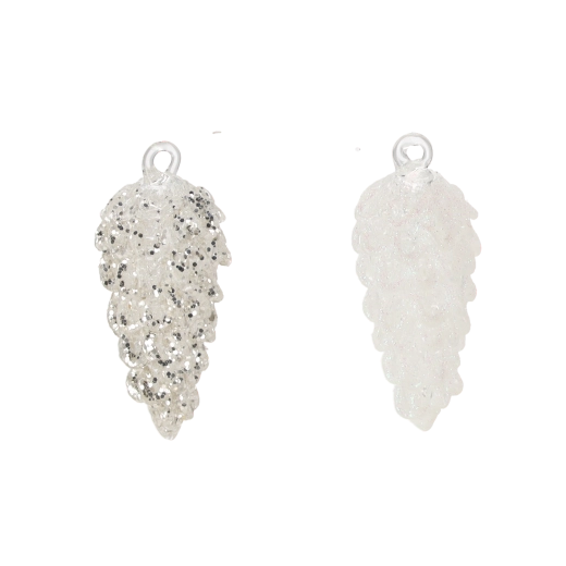 Adjon időtlen eleganciát karácsonyának. A fehér toboz alakú üveg díszek részletgazdag kidolgozásukkal és fényes felületükkel hódítanak, amely szépen veri vissza a fényt. A semleges fehér szín és a változatos minták könnyen illeszkednek a természetes és a modern dekorációkhoz is, kiemelve a fa stílusát.