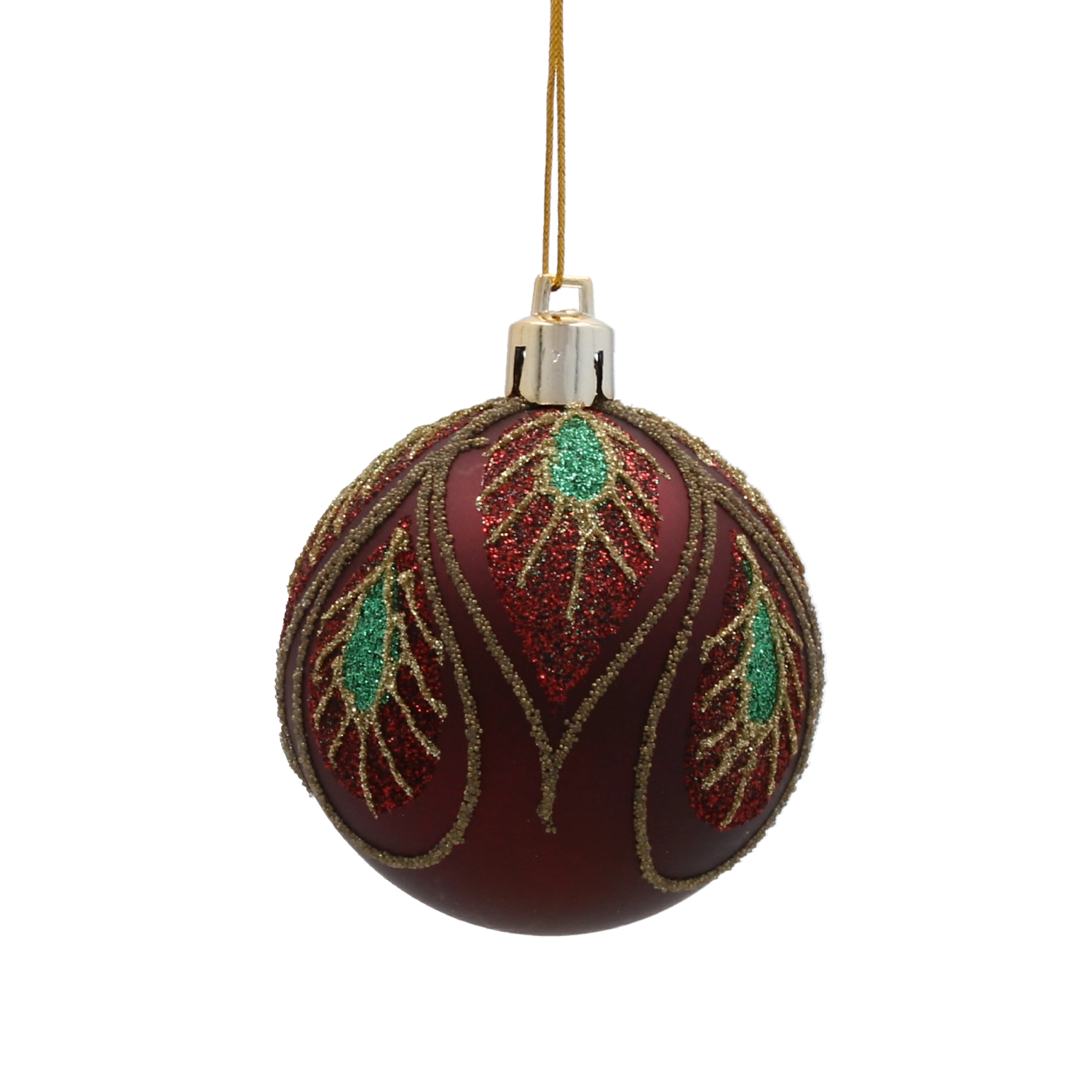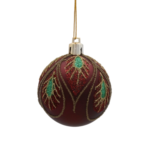 A mély bordó tónus és a kifinomult arany leveles minta mélységet, melegséget és ünnepi ragyogást ad a díszítésnek.