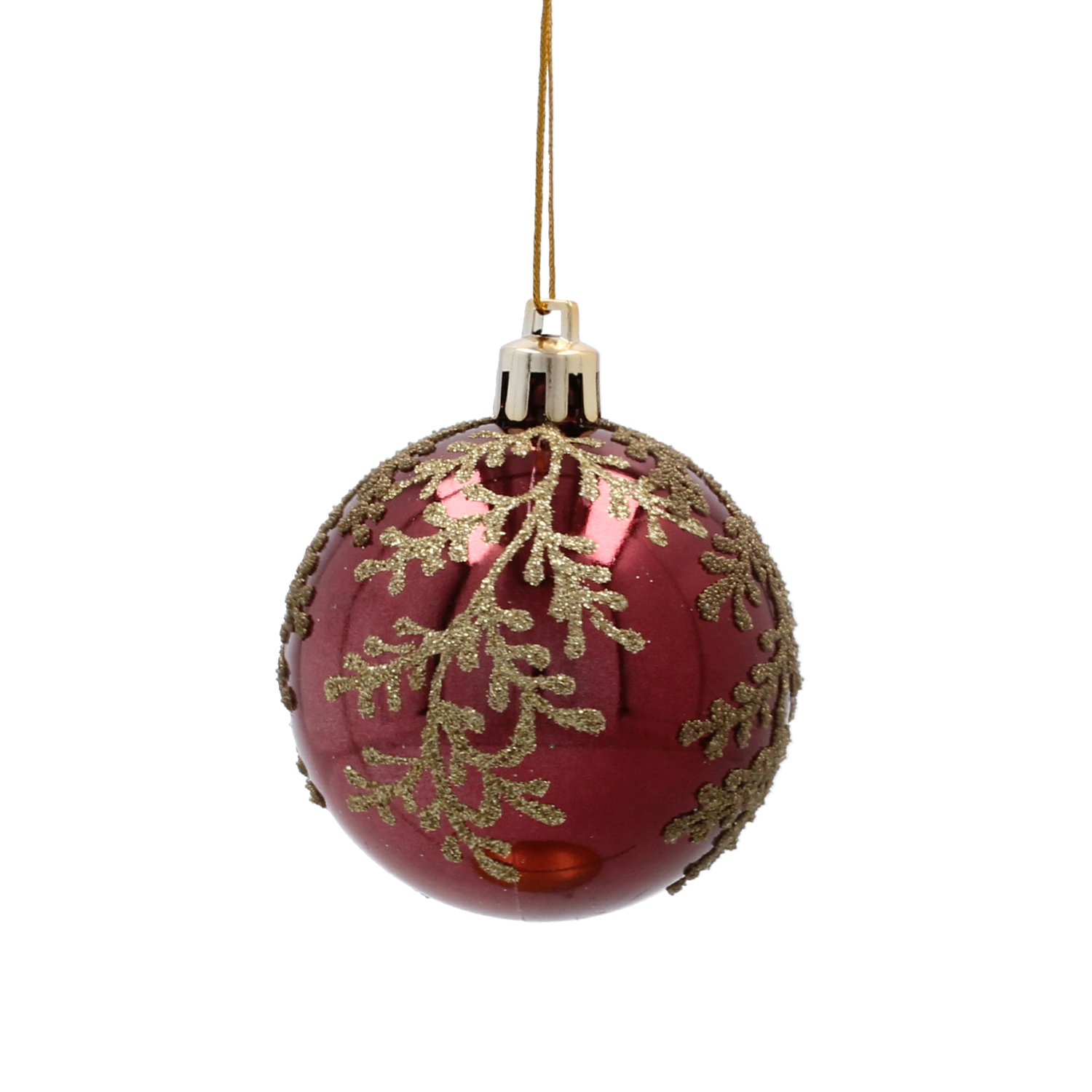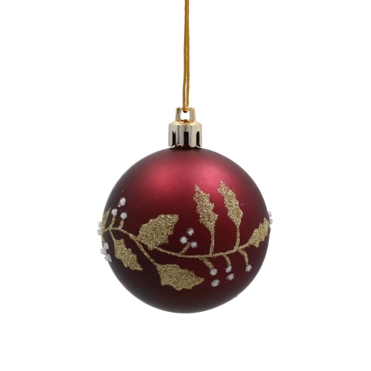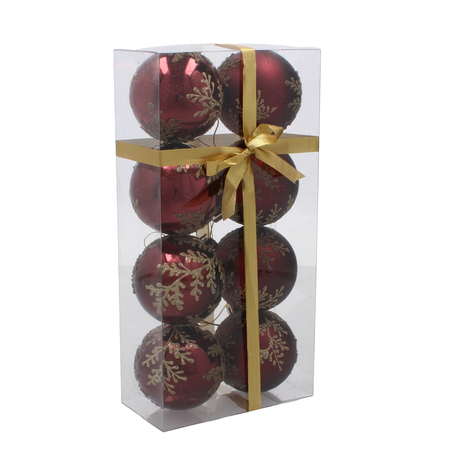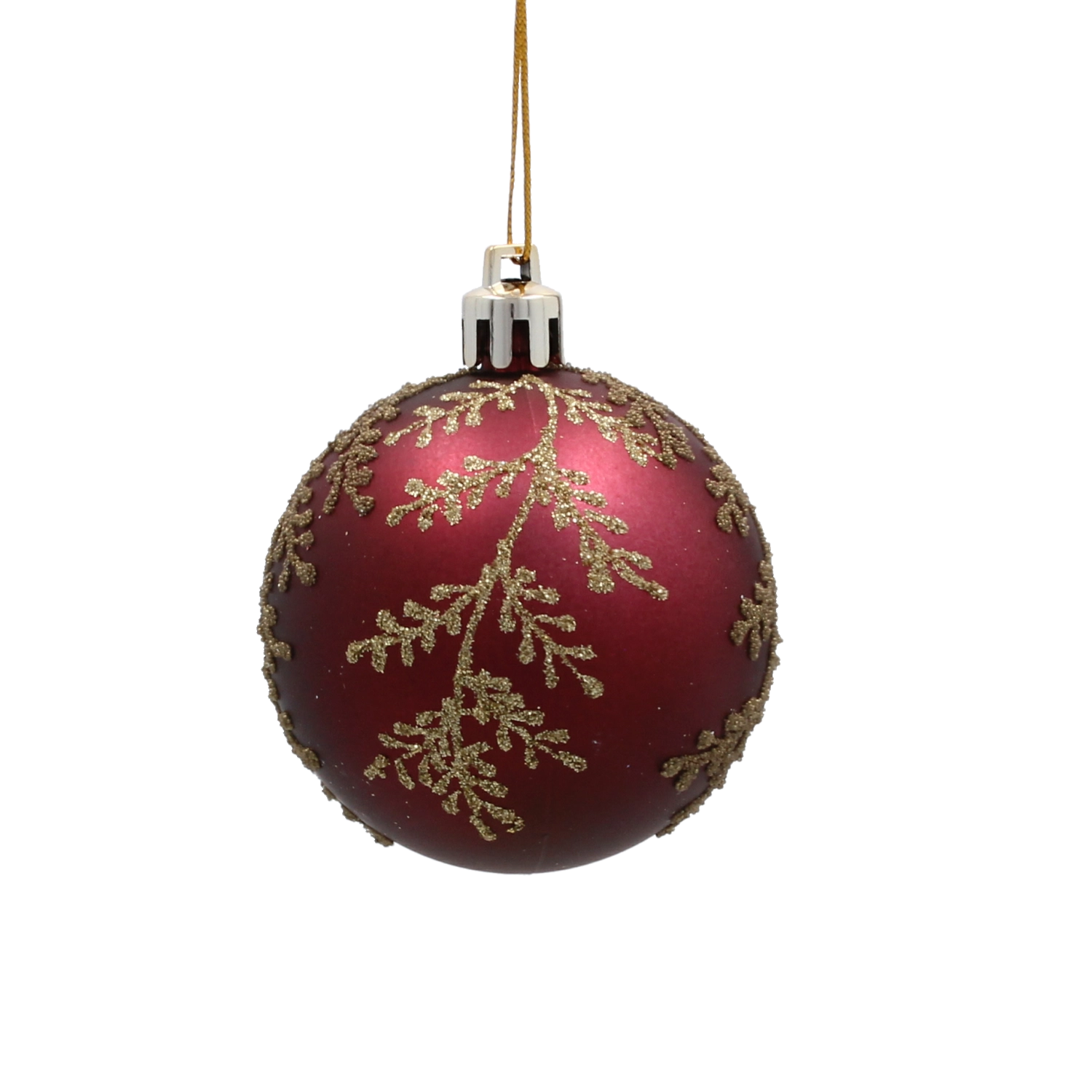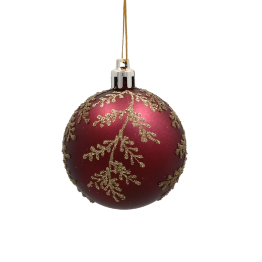Varázsolj igazi ünnepi hangulatot otthonodba ezzel a nyolc darabos, 6 cm átmérőjű bordó karácsonyi gömbkészlettel. Minden dísz tartós műanyagból készült, elegáns arany leveles mintával és matt–fényes felületkombinációval, amely kifinomult csillogást és harmonikus kontrasztot kölcsönöz a fának. Könnyű kialakításuknak köszönhetően egyszerűen felakaszthatók, és ideálisak karácsonyfára, valamint ünnepi dekorációkhoz és koszorúkhoz is.