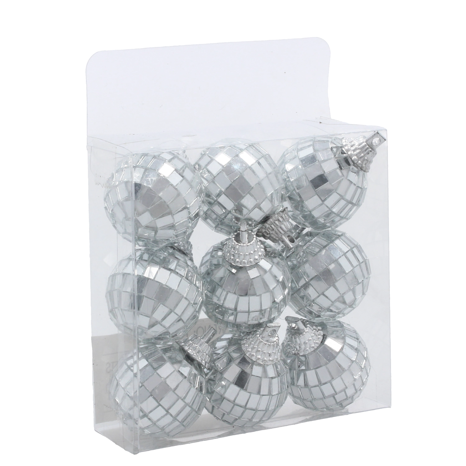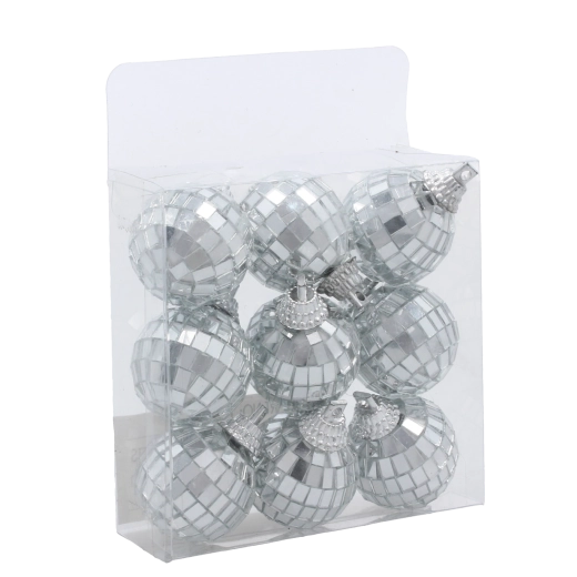 Ezüst diszkógömbök karácsonyfadísz készlet 3 cm – 9 db