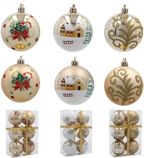 Minden gömb úgy készült, hogy tökéletesen illeszkedjen a hagyományos és a modern díszítésekhez egyaránt. A fényes és matt hatások kiemelik a fény játékát, és meghitt, ünnepi hangulatot teremtenek az enteriőrben.