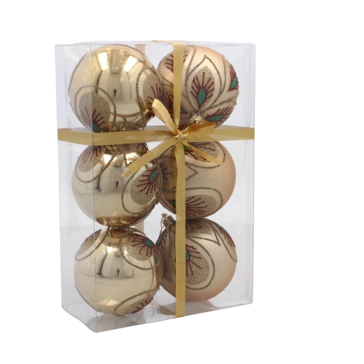 Adj ünnepeidnek kifinomult hangulatot! Az arany és pezsgő tónusú, összehangolt gömbszett a fényes, matt és csillogó felületek kiegyensúlyozott kombinációját kínálja. Finom vonalvezetésű minták, csillámos részletek és pávaszem motívumok gondoskodnak a látványos fényjátékról, amely hagyományos és modern fákon egyaránt remekül érvényesül.