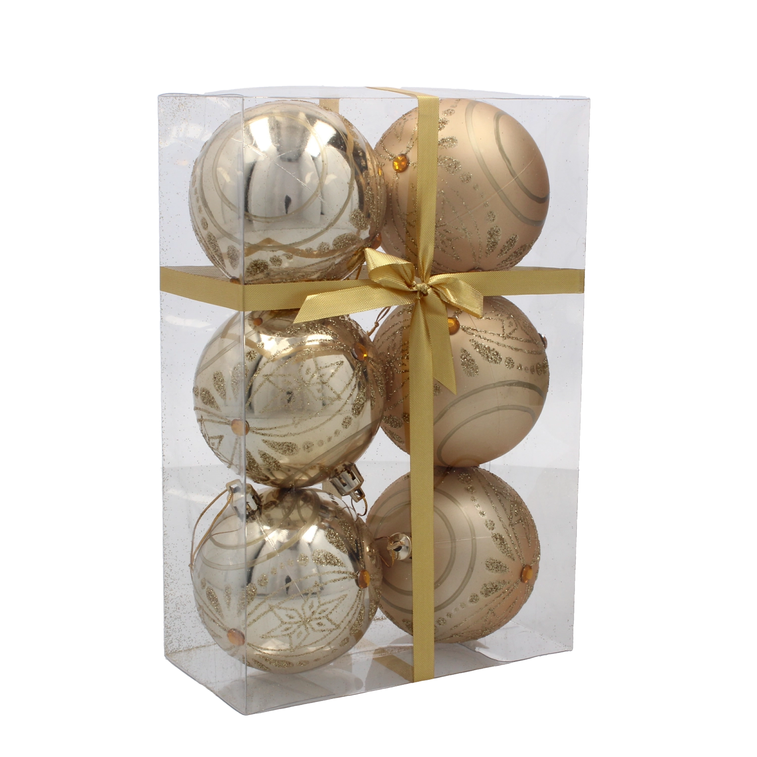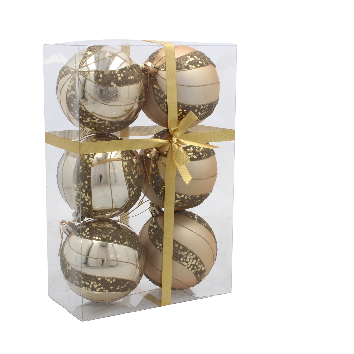 A törhetetlen műanyagnak köszönhetően a díszek könnyűek, biztonságosak és ütésállók – ideálisak családoknak, közösségi terekbe, illetve nagyobb fák dekorálásához. A semleges arany és pezsgő árnyalatok könnyen kombinálhatók füzérekkel, masnikkal és fényfüzérekkel, így egyszerűen hozhatsz létre stílusosan összehangolt karácsonyi dekorációt.
