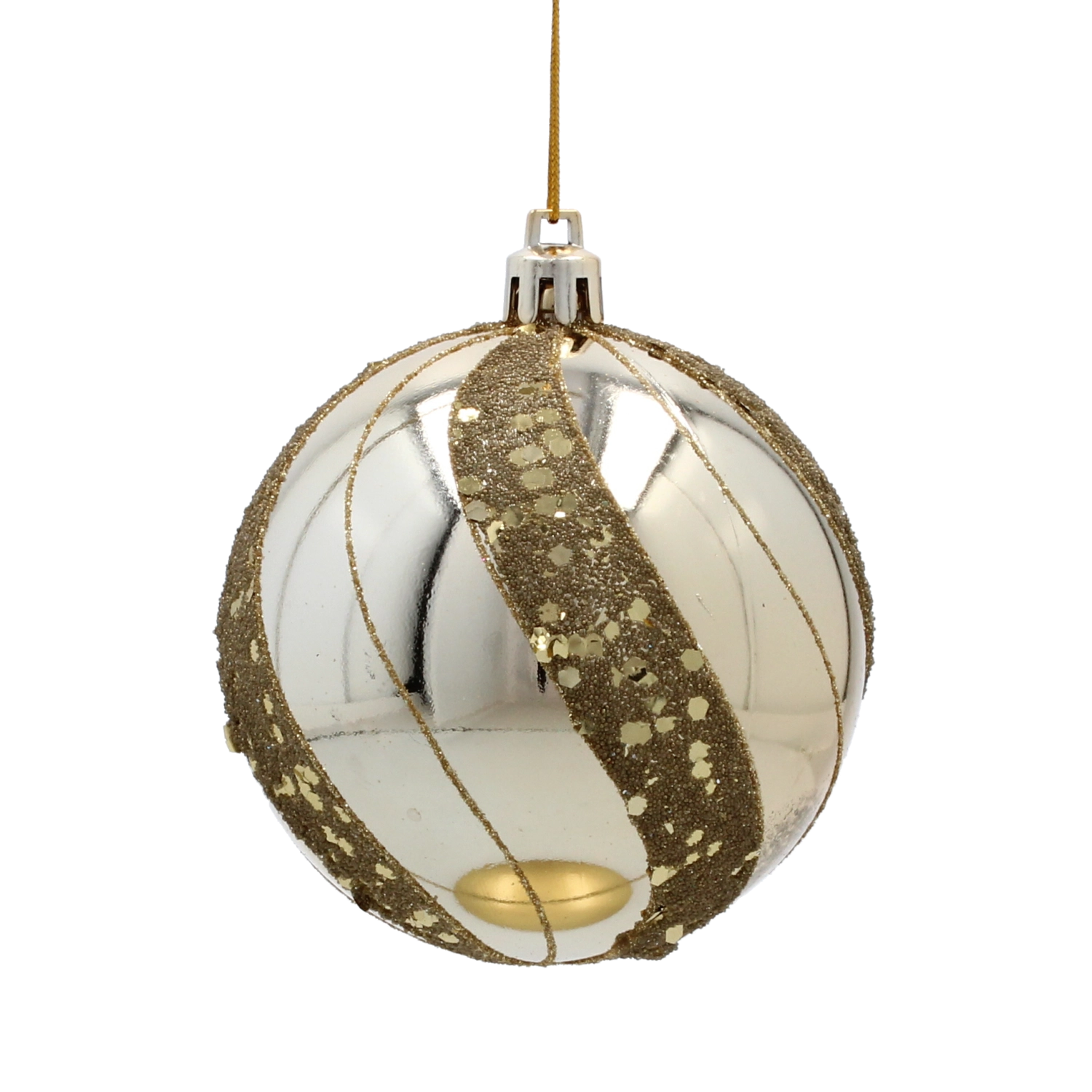Fényes, matt és csillámos felületek kombinációja harmonikus, elegáns összhatást teremt, amely azonnal feldobja karácsonyfája megjelenését.