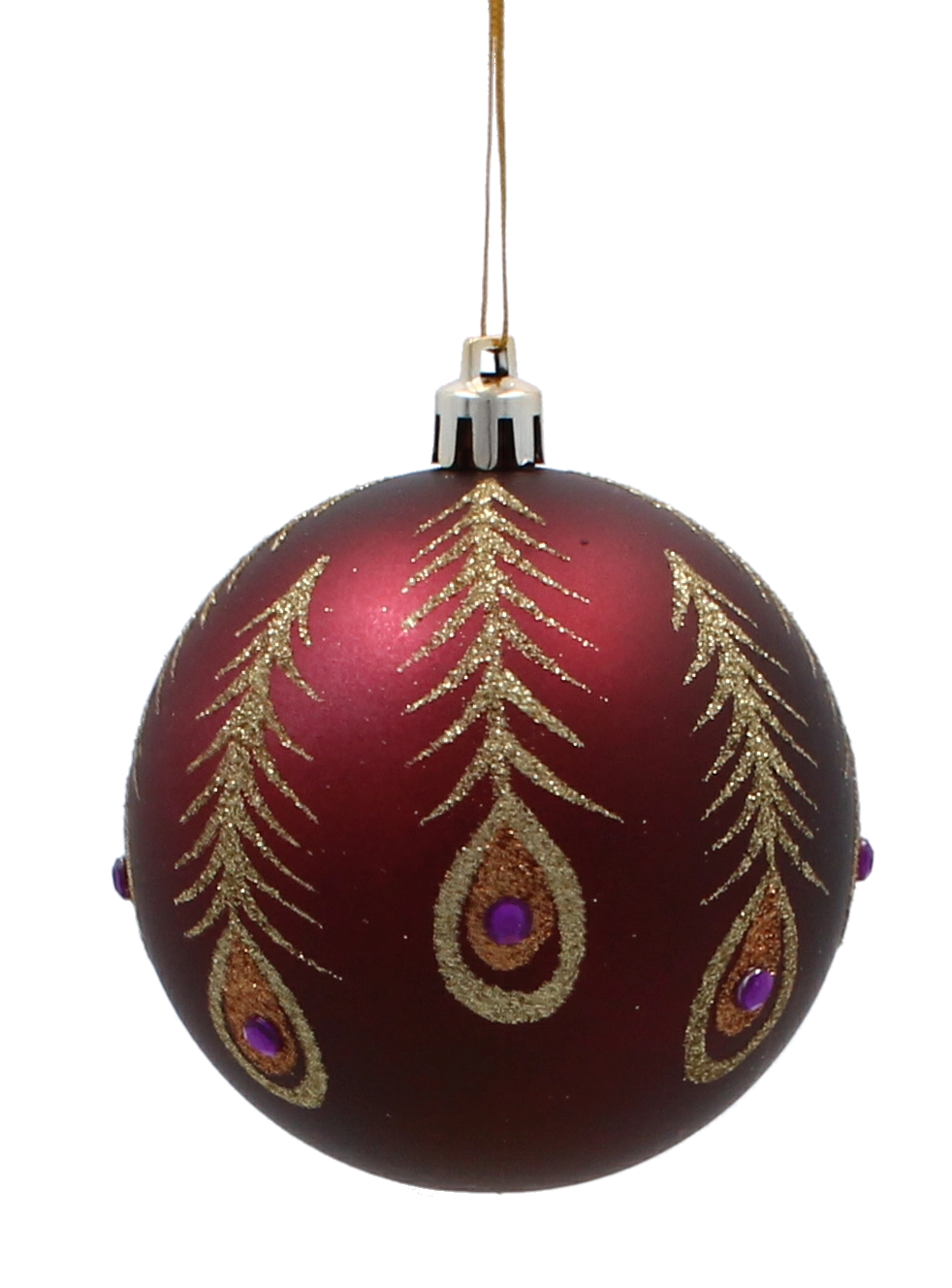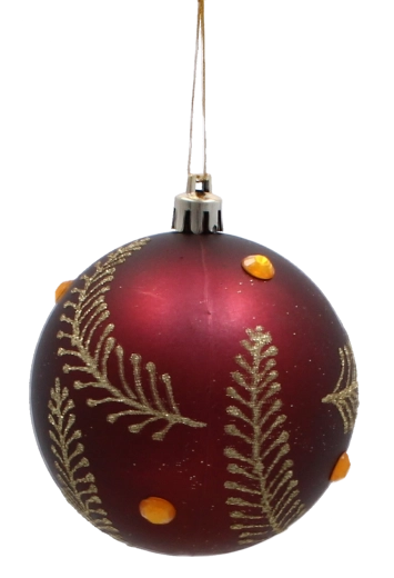 A 8 cm-es átmérő és az egységes bordó tónus harmonikus dekorációt biztosít, amely minden karácsonyfán remekül mutat.