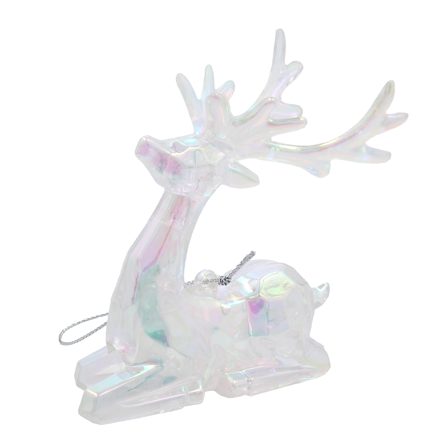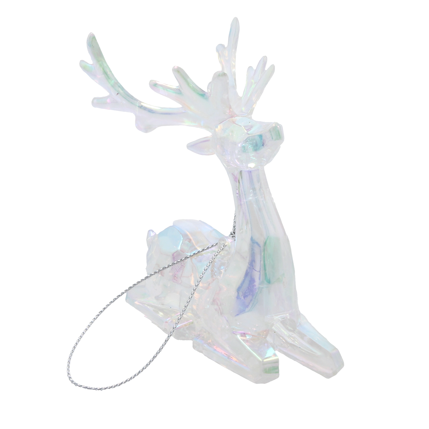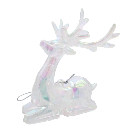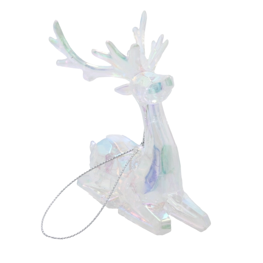Adjon finom fényt ünnepi dekorációjának a rénszarvas alakú díszzel, amely fazettált, irizáló felületével tűnik ki. Gondos kidolgozásának és részleteinek köszönhetően elegáns hatást kelt, a fán és a gyertyák vagy LED fényfüzérek fényében gyönyörű, színes fényjátékot hoz létre.