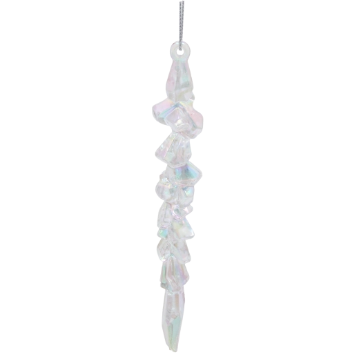 Elegáns, 15 cm hosszú karácsonyi dísz jégcsap formában, opálfényű felülettel, amely a fának jeges csillogást kölcsönöz. A könnyű és strapabíró műanyag a gyerekes háztartásokban is biztonságos, a könnyű felakasztást szolgáló zsinórnak köszönhetően pedig egyszerűen elhelyezhető a fán, koszorúkon, girlandokon és az ablakban is.