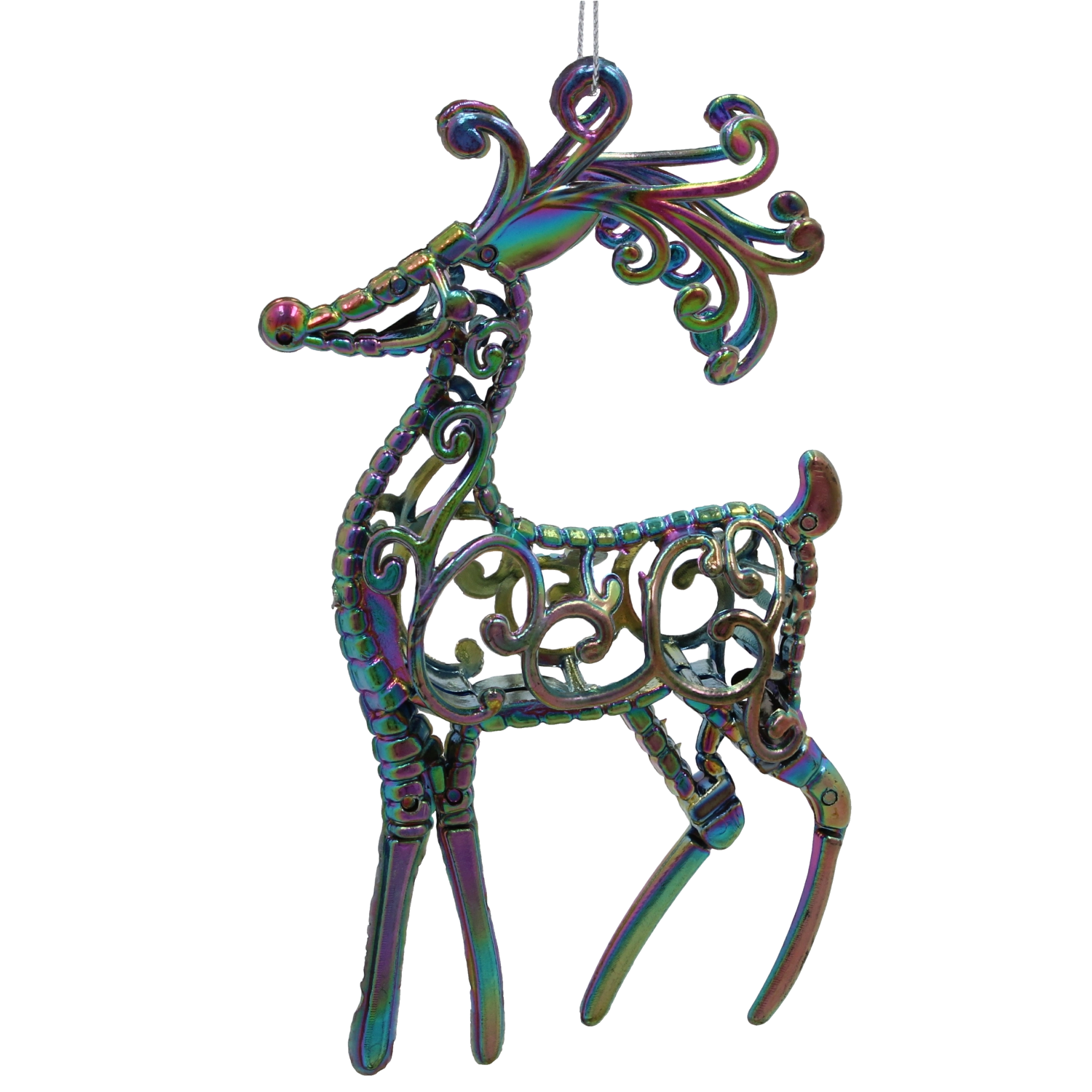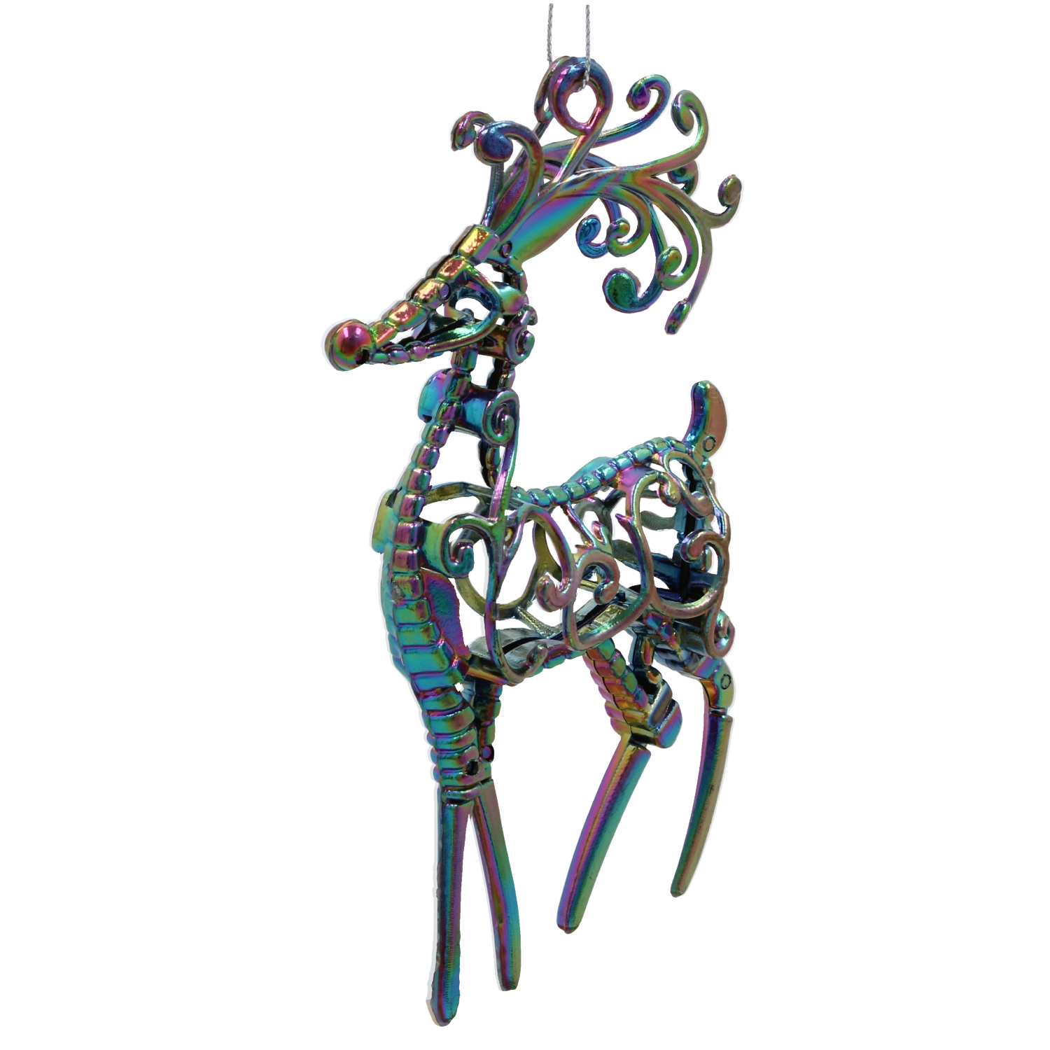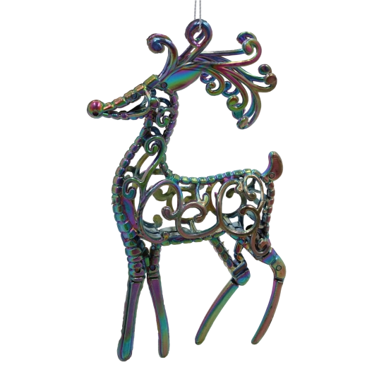 Függő karácsonyi dísz rénszarvas szivárványosan irizáló hatással 10 × 16 cm