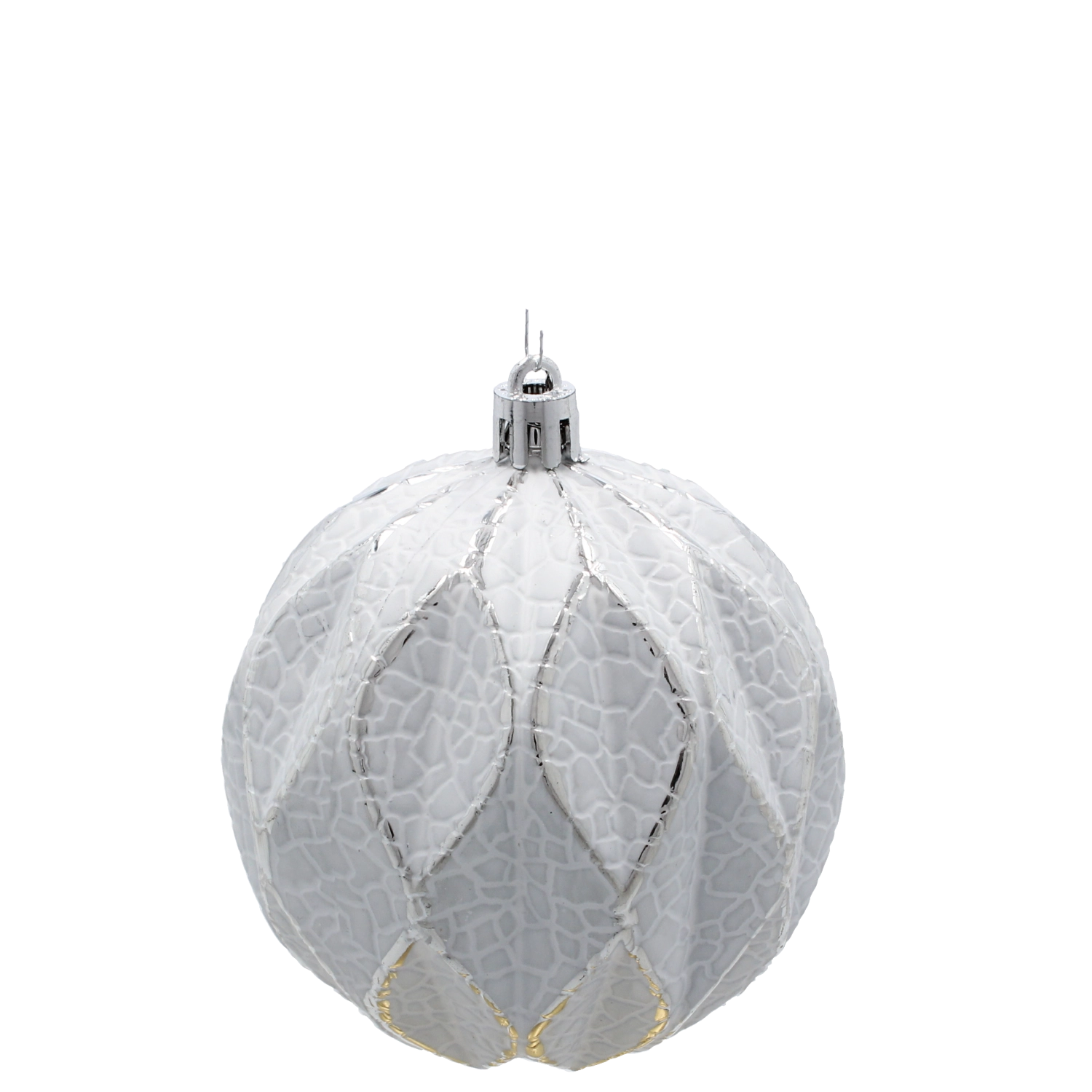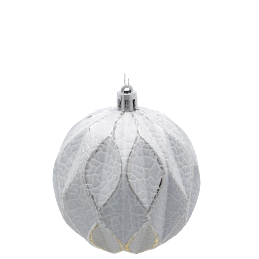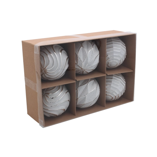 Ez a fehér–ezüst karácsonyi gömb szett időtálló megjelenést kölcsönöz bármely enteriőrnek. A három különböző, markáns textúrájú minta harmonikus egységet alkot, stílusos, ünnepi karaktert adva a fának. A fényes felület szépen játszik a fénnyel, mélységet és szikrázó ragyogást ad a dekorációnak.
