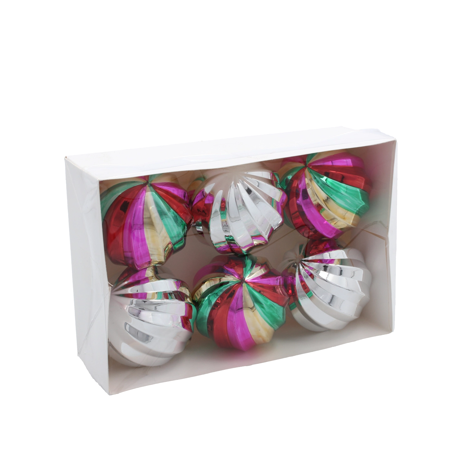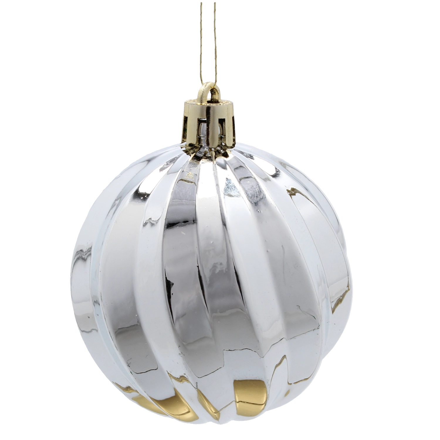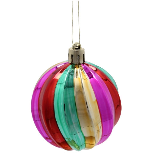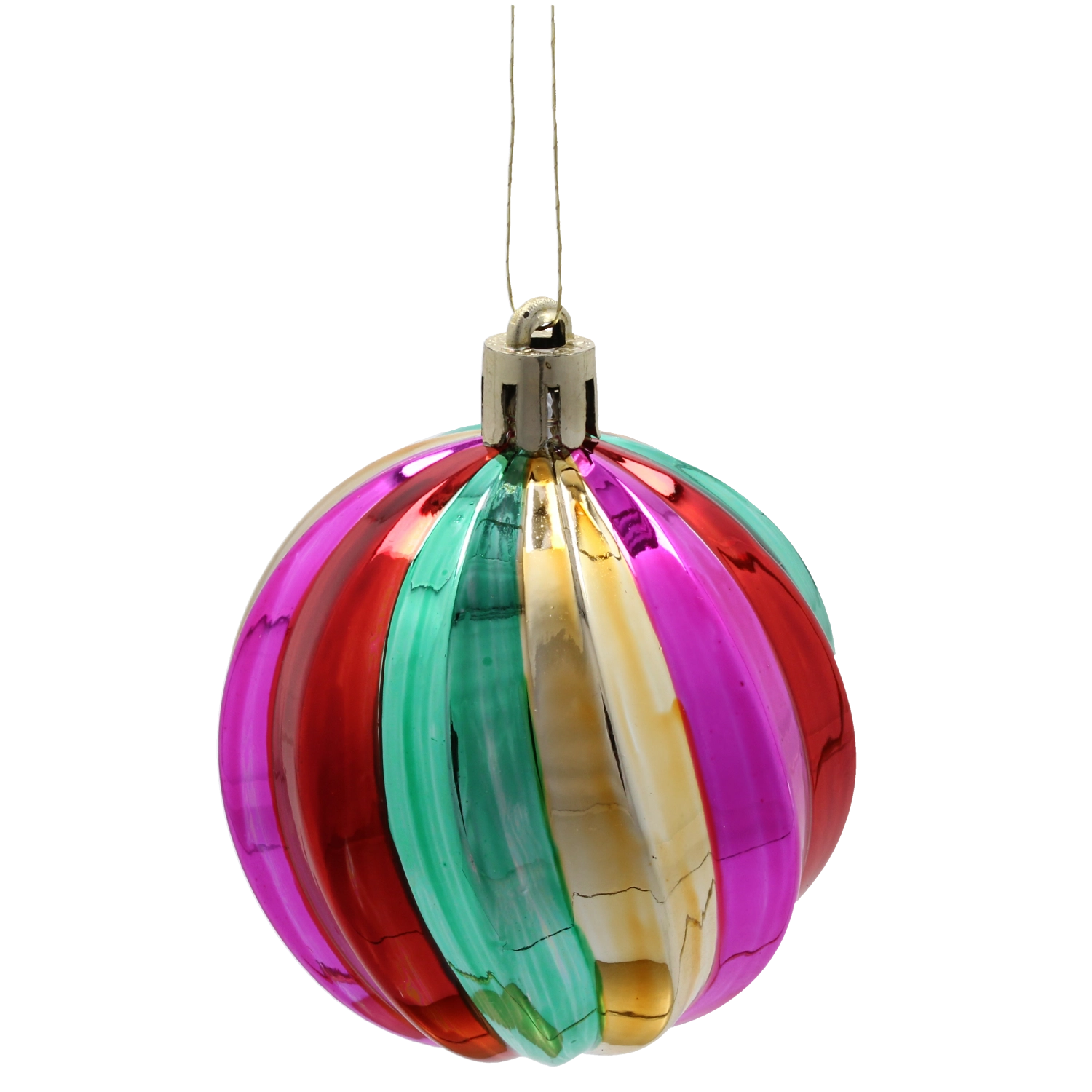 A rovátkolt kivitel („tök” forma) és a csillogó felület látványos fényhatást kelt a karácsonyfán és a dekorációkban.