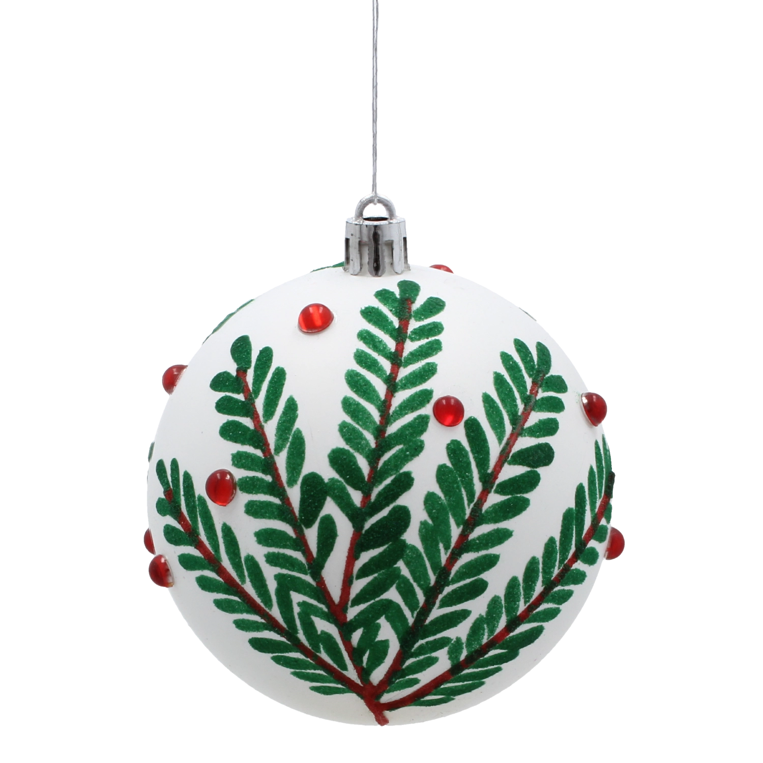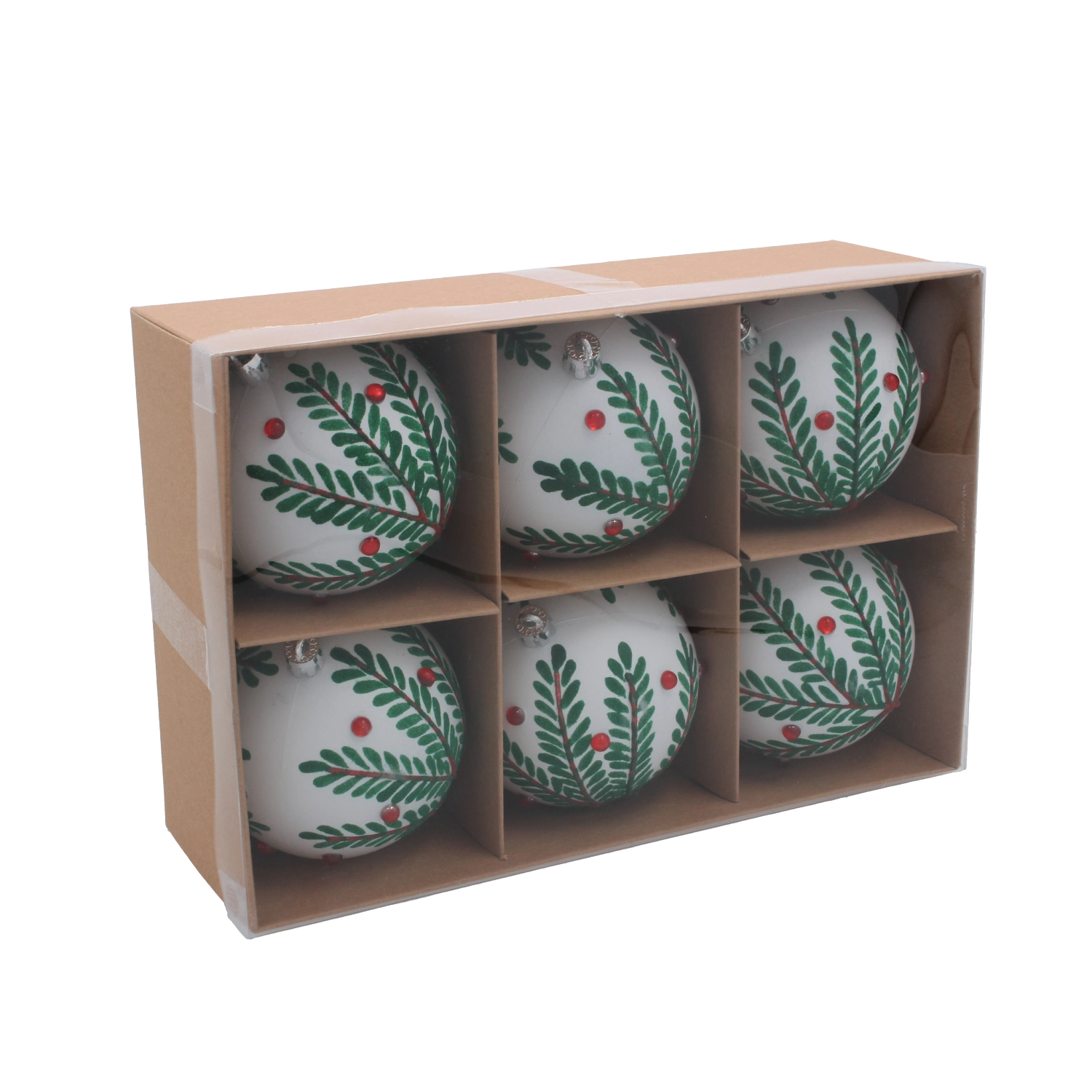 Adj elegáns hangulatot a fádnak a hat darabos, 8 cm átmérőjű fehér karácsonyi gömb szettel. Minden díszt finom ágacskák díszítenek a természetes és kifinomult megjelenésért. A minimalista dizájnnak köszönhetően könnyen összehangolhatók hagyományos és modern dekorációval is. A könnyű és tartós kialakítás egyszerű kezelhetőséget és hosszú élettartamot biztosít.