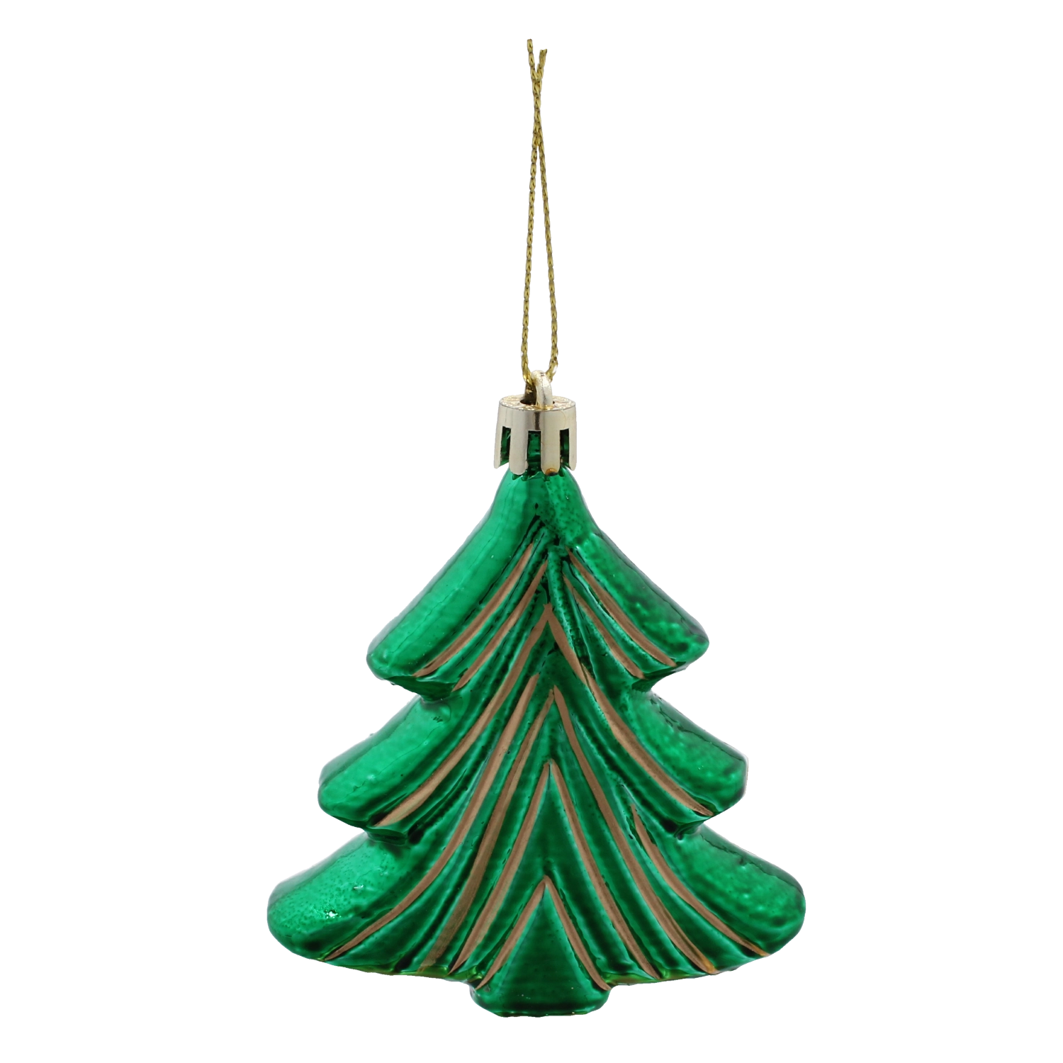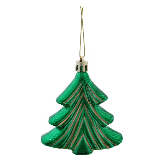 A fenyőfa alakú díszek fényes felülettel és arany színű akcentusokkal klasszikus ünnepi hangulatot adnak a fának, és azonnal magukra vonják a figyelmet.