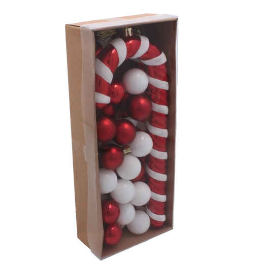 Vigyen ünnepi varázst otthonába a 32 darabos, stílusos díszszettel, amely a 25 cm-es cukorpálcát és a 3 cm átmérőjű gömbök keverékét ötvözi hagyományos színekben. A törhetetlen műanyagnak köszönhetően a díszek könnyűek, biztonságosak és tartósak, míg a különböző felületi kidolgozások és a könnyű felakasztás zsinórokkal gyors és elegáns fadíszítést biztosítanak.