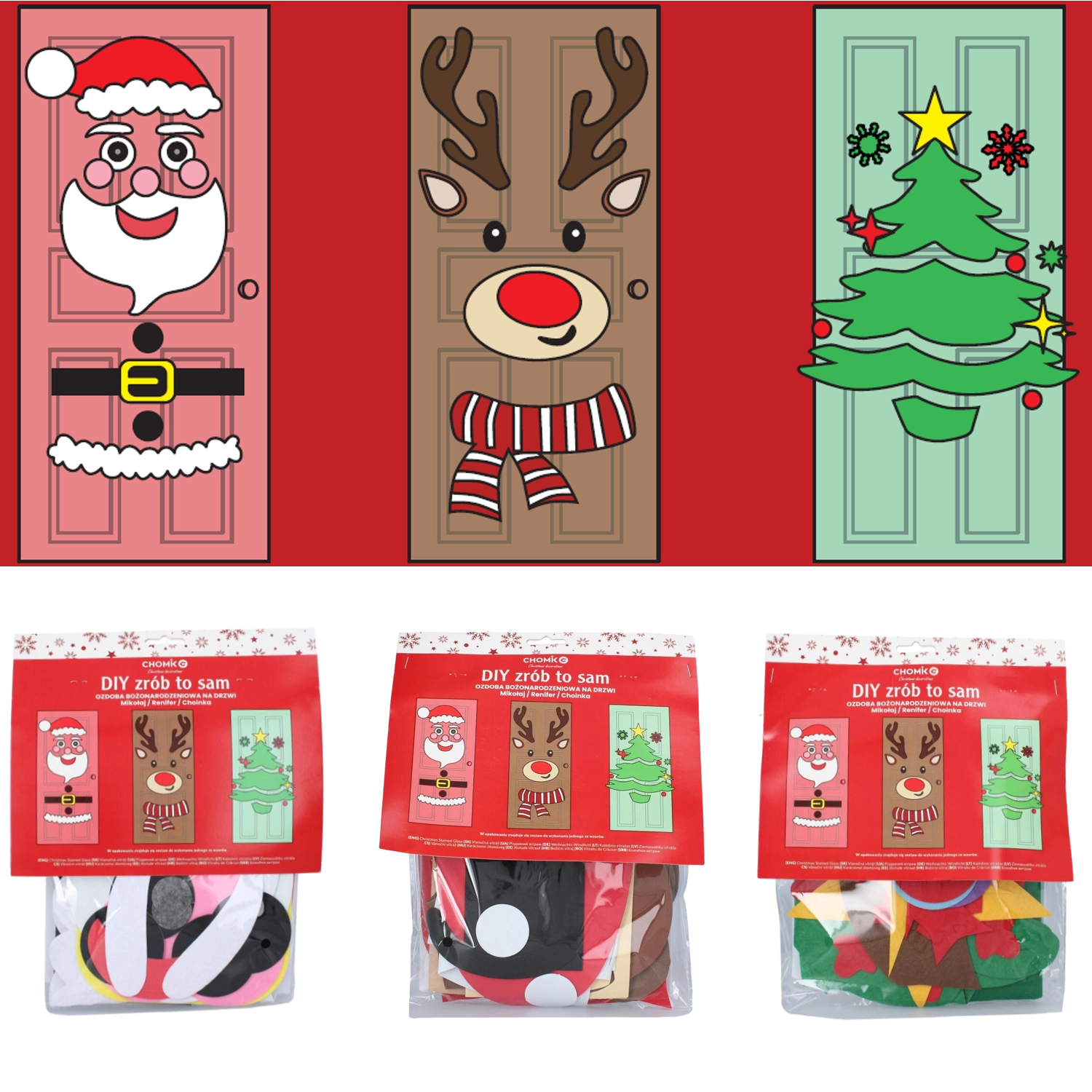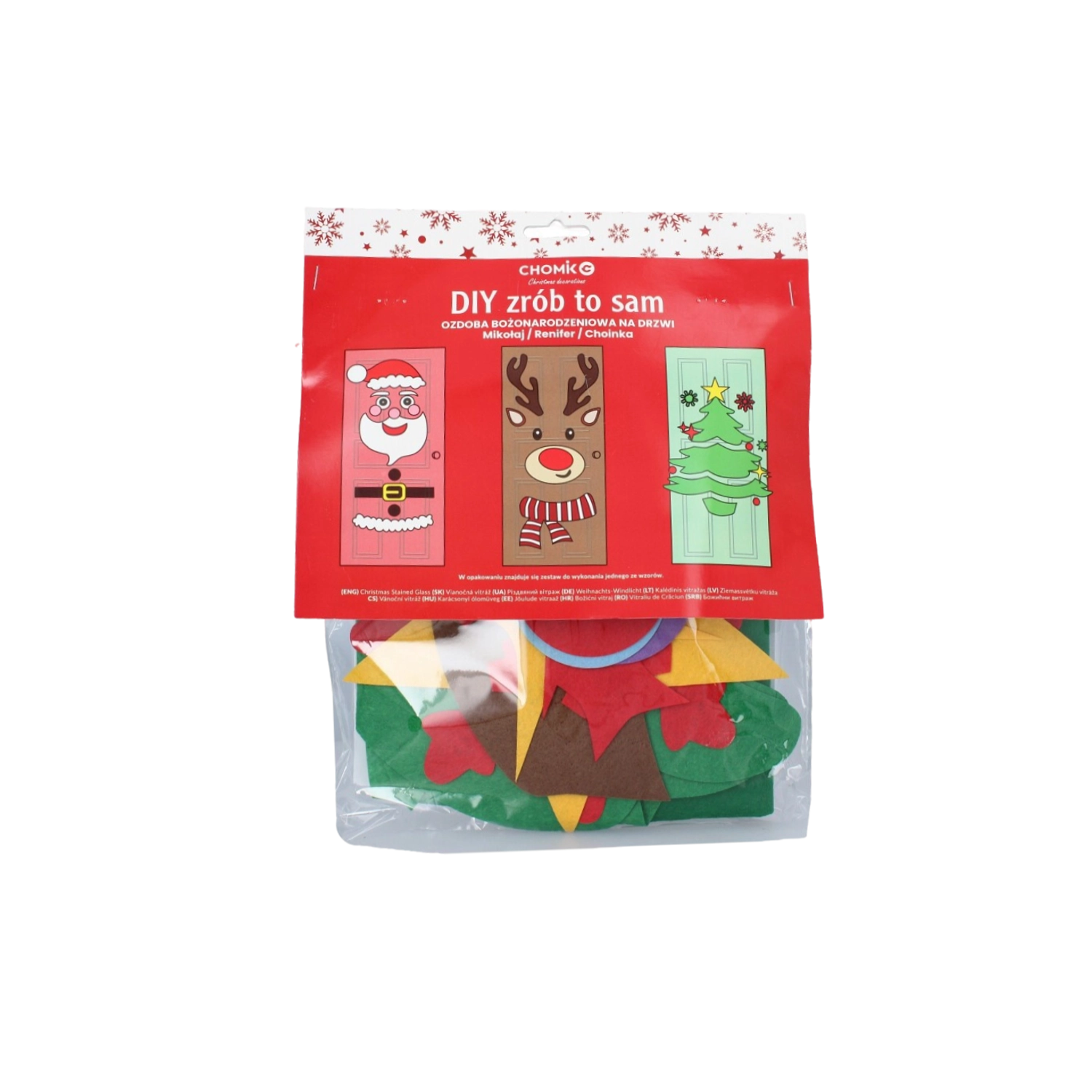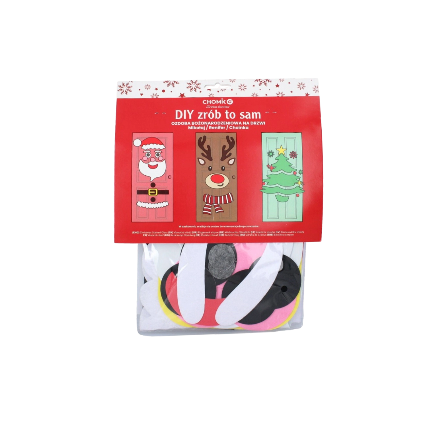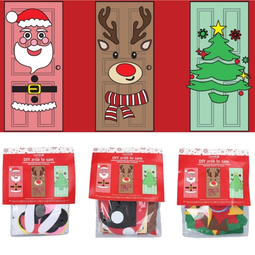 Ez az ünnepi dekor bármely beltéri vagy bejárati ajtót látványos karácsonyi elemmé varázsol. A puha filc és az öntapadós részek egyszerűen rögzíthetők és bármikor átrendezhetők – ideális gyermekeknek és felnőtteknek egyaránt. Válassz a karácsonyfa, a TÉLAPÓ vagy a rénszarvas motívum közül, és alkoss egyedi díszítést saját ízlésed szerint.