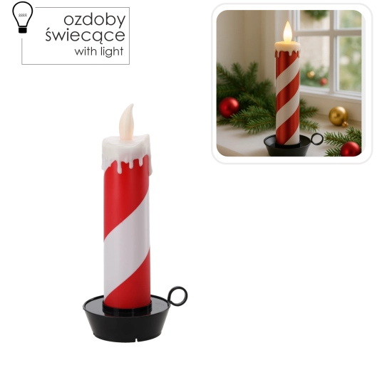 Teremtsen otthon varázslatos ünnepi hangulatot a dekoratív fehér–piros LED gyertyával, 27,5 cm magasságban. Biztosítja a biztonságos, lángmentes fényt, a valósághű lánghatást és a praktikus 6/18 órás időzítőt. A 2× AA elemes tápellátásnak köszönhetően könnyedén elhelyezhető asztalon, polcon vagy ablakpárkányon, kábelek nélkül.