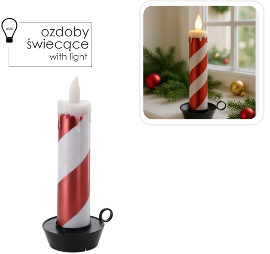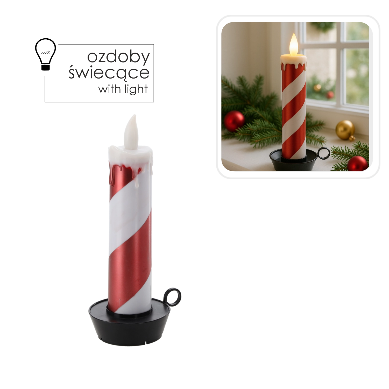 Ez a stílusos LED gyertya fehér–piros csíkos, cukorpálcát idéző dizájnnal bármelyik enteriőrt feldobja. Meleg, pislákoló fénye meghitt hangulatot teremt nyílt láng kockázata és a lecsöpögő viasz okozta rendetlenség nélkül.