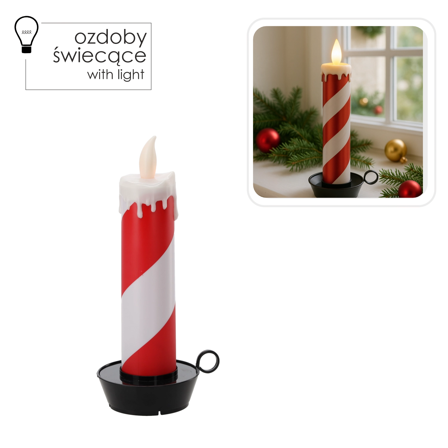 Karácsonyi LED gyertya fehér–piros 10 × 10 × 27,5 cm időzítővel