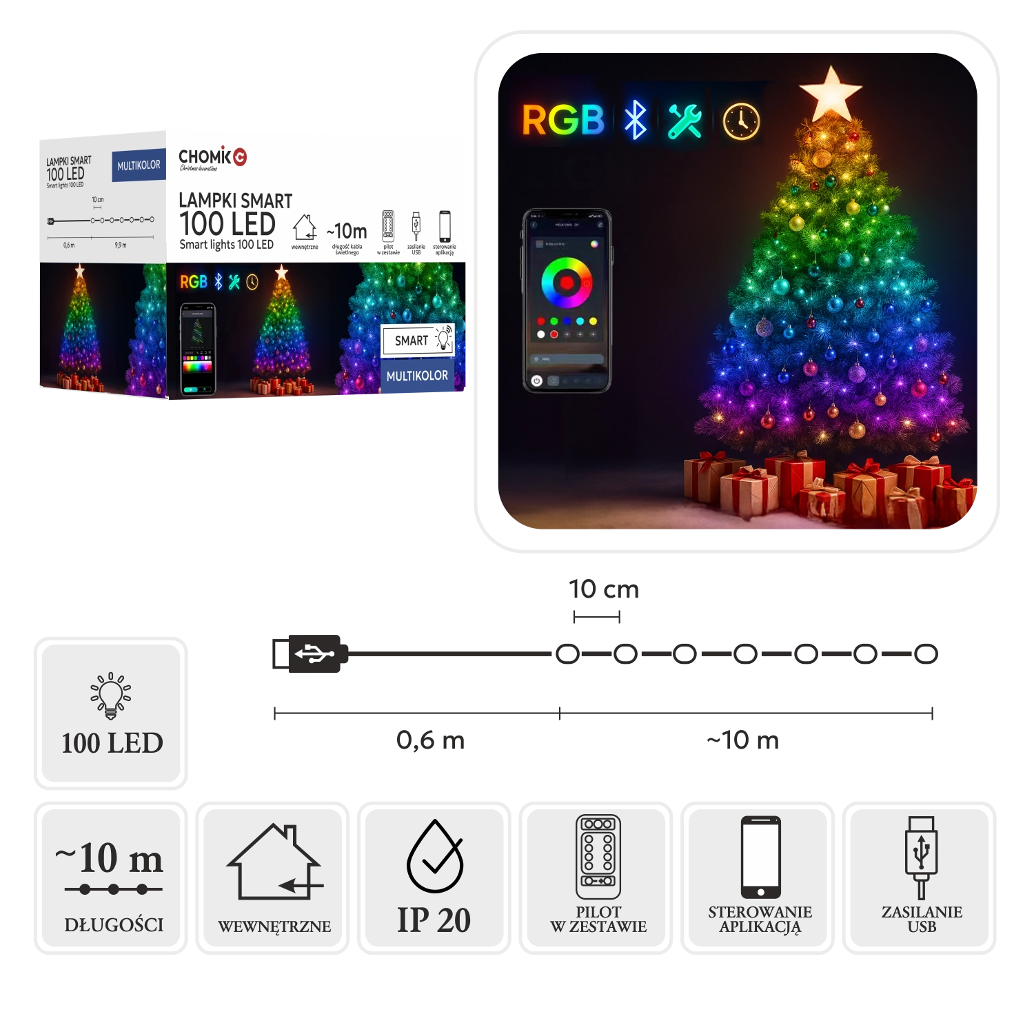 Teremts pontosan olyan hangulatot, amilyenre vágysz az okos LED fényfüzérrel, amelyben 100 színes RGB LED található. A mobilalkalmazás és a távirányító segítségével könnyedén változtathatod a színeket és az effekteket. A praktikus USB-táplálás, az átlátszó kábel és a 10 m-es világító szakasz remekül illik a modern enteriőrökhöz.