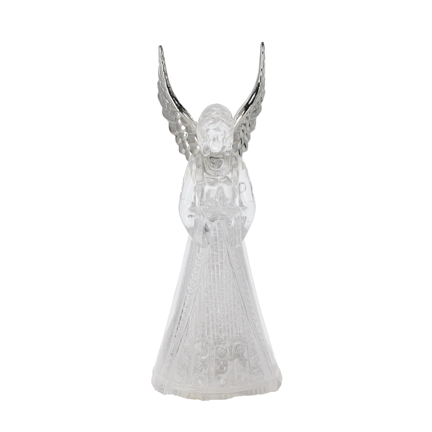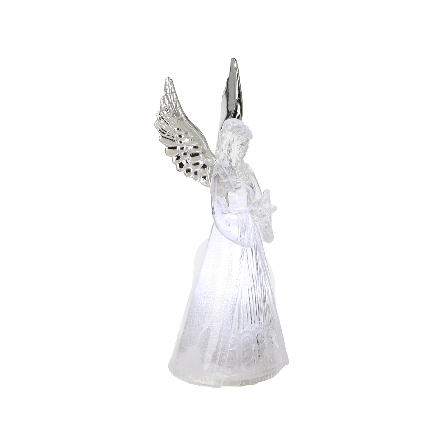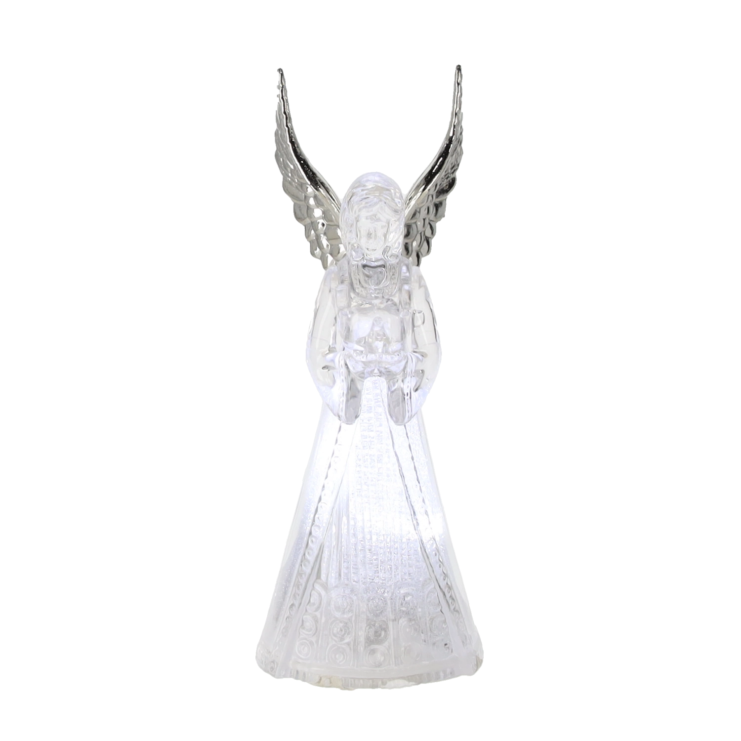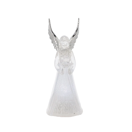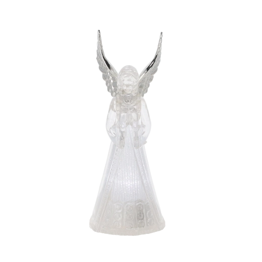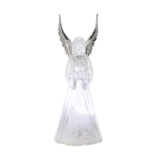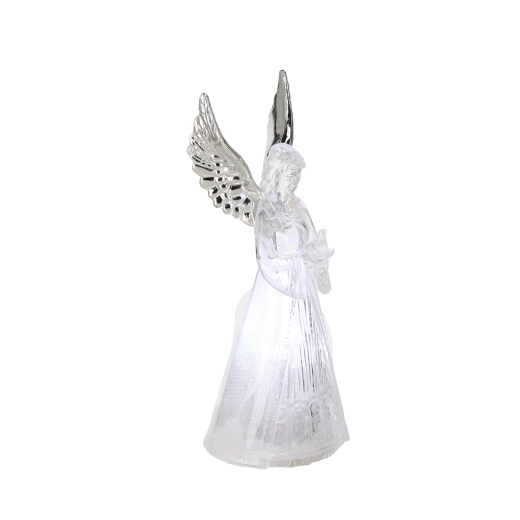 Ez a világító angyalfigura békét és ünnepi hangulatot hoz otthonába. Az angyal áttetsző teste szépen átereszti és szórja a hideg fehér LED fényt, amely elegáns és visszafogott hatású. Kis méretének köszönhetően könnyen elhelyezhető asztalon, komódon vagy ablaknál.