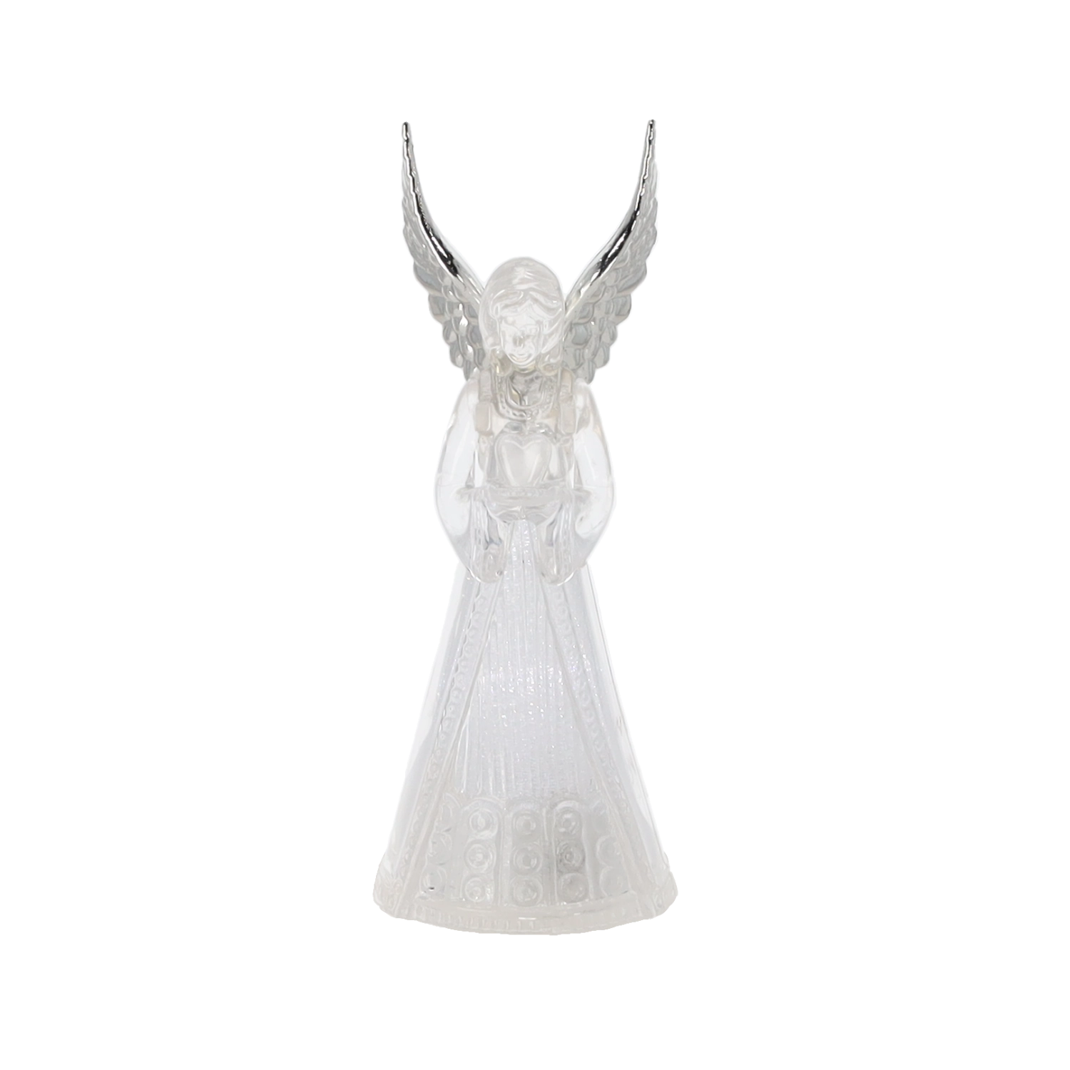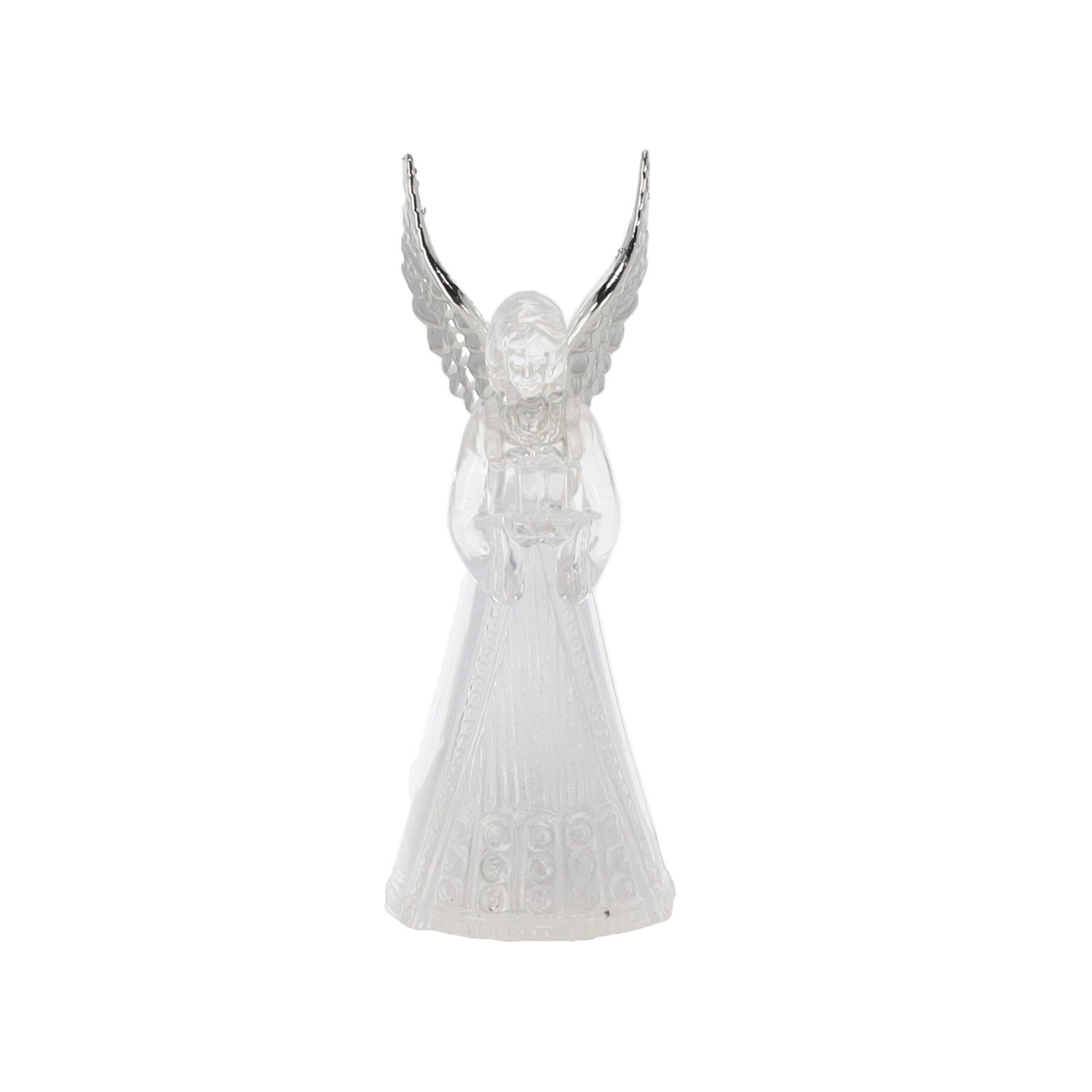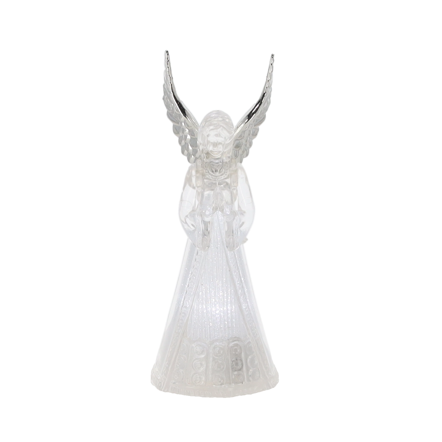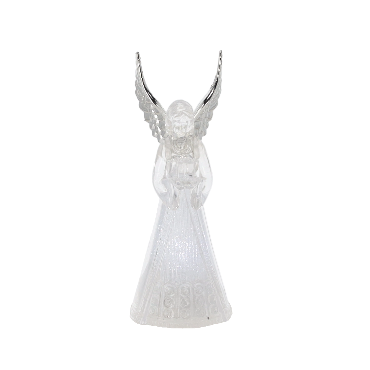 Ez a világító angyalfigura békét és ünnepi hangulatot hoz otthonába. Az angyal áttetsző teste szépen átereszti és szórja a hideg fehér LED fényt, amely elegáns és visszafogott hatású. Kis méretének köszönhetően könnyen elhelyezhető asztalon, komódon vagy ablaknál.