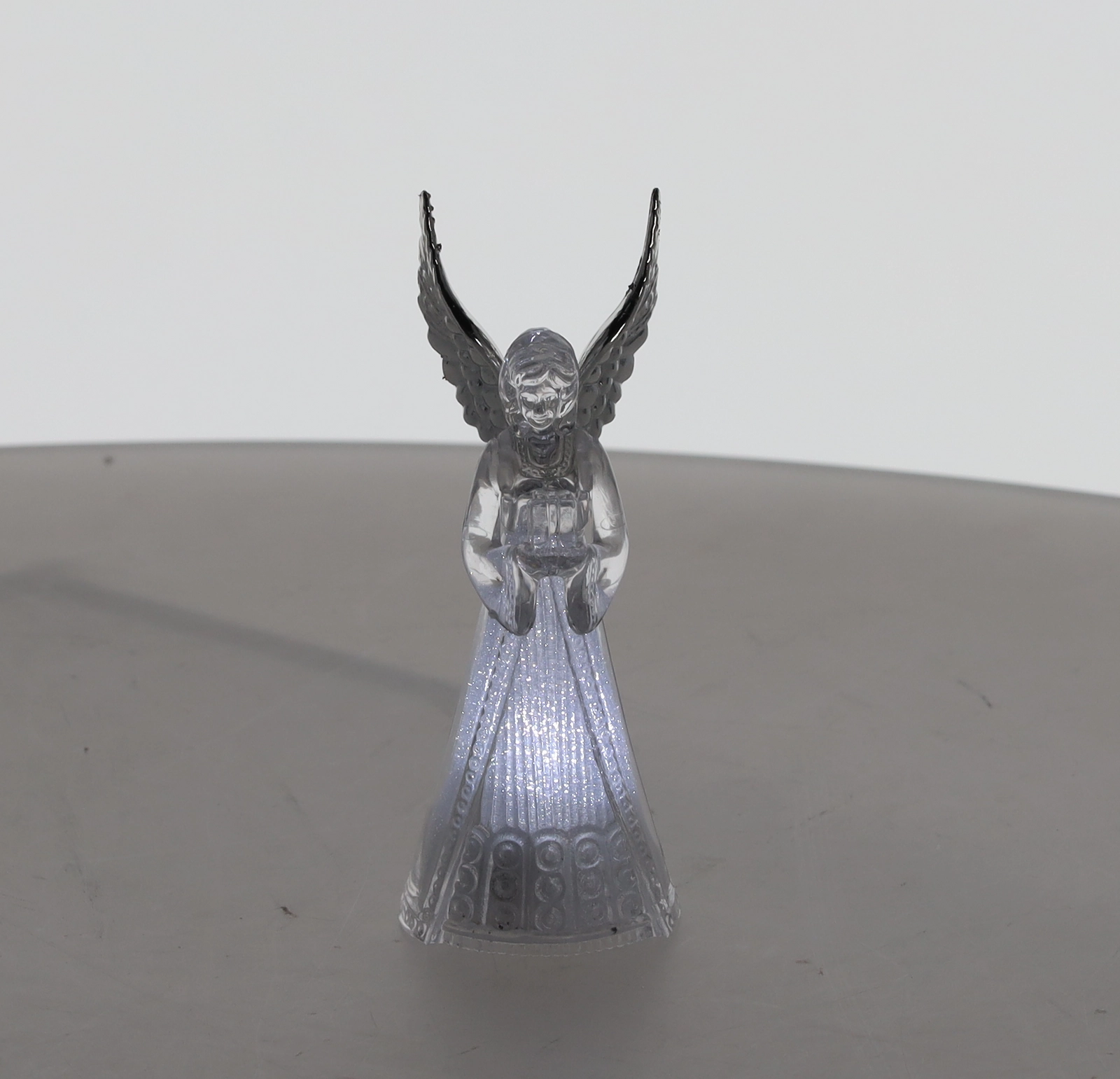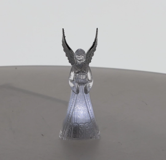 Az angyal áttetsző teste szétszórja a hideg fehér fényt, nyugodt, elegáns atmoszférát teremtve karácsonyra és esti elcsendesedéshez.