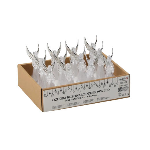 Elegáns angyaldísz, amelynek finom, hideg fehér fénye ragyogóvá tesz bármelyik enteriőrt. Kompakt, 11 cm-es mérete miatt polcra, asztalra és párkányra is ideális. Az áttetsző műanyag figurát részletgazdag szárnyak és finom ruha-minták díszítik, amelyek szépen szórják a fényt. A működésről 3 db LR44 elem (a csomagban) gondoskodik, a vezérlés egyszerű a csúszó ON/OFF kapcsolóval. Ideális karácsonyi dekoráció varázslatos hangulat megteremtéséhez.