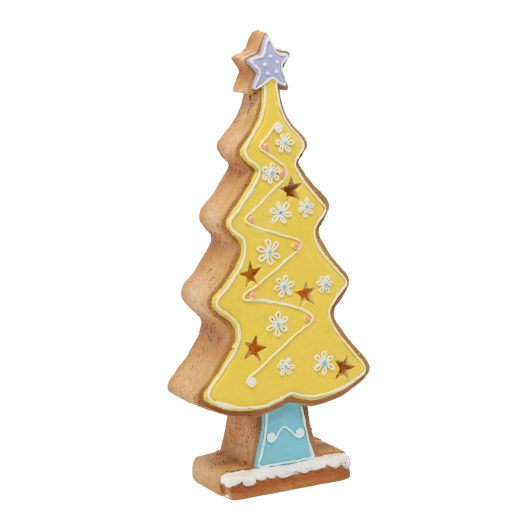 Ez a stílusos, mézeskalács fenyőt formázó figura kellemes, sárga fénnyel ragyogja be a belső teret. A minőségi, magnézium-összetételű kivitel stabilitást és hosszú élettartamot biztosít, míg a részletgazdag díszítés autentikus ünnepi hangulatot teremt.