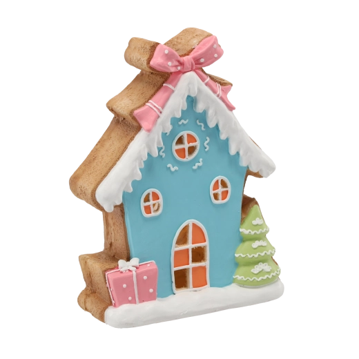 Karácsonyi figura – kék mézeskalácsház LED világítással