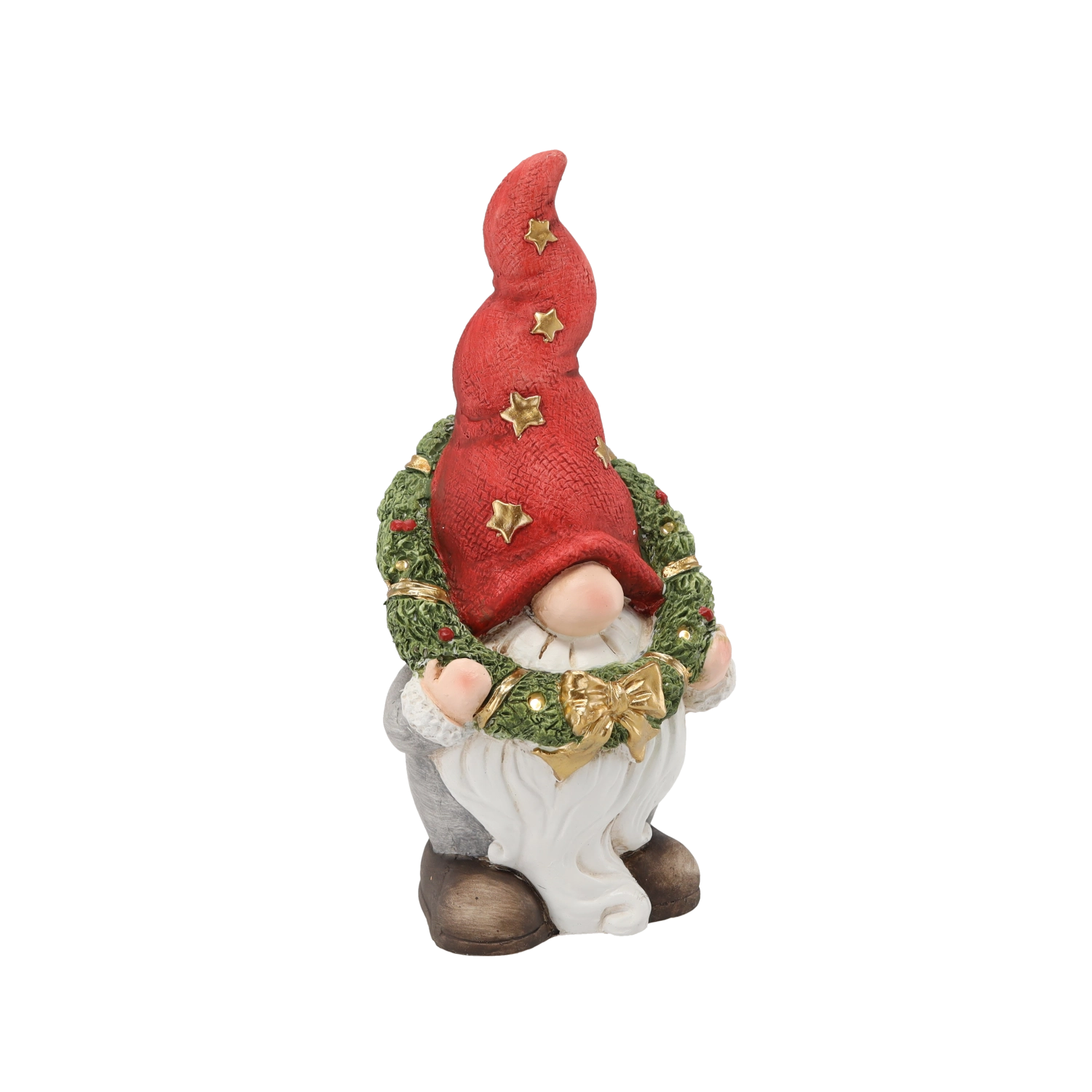 Vigyen ünnepi varázst otthonába ezzel a bájos dekorációval – karácsonyi manófigurával koszorúval és LED világítással. A magnézium-oxid alapú anyagból készült, masszív kivitel és a 40 cm-es magasság feltűnő díszzé teszi komódon, kandallón vagy akár a fa alatt. 2× AAA elemről működik, így biztonságos és kényelmes, vezeték nélküli használatot biztosít.