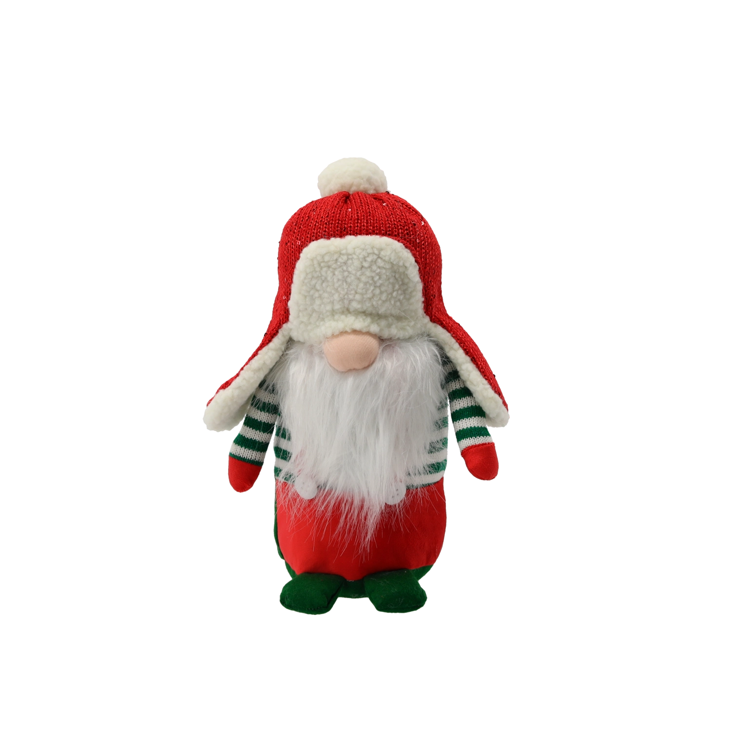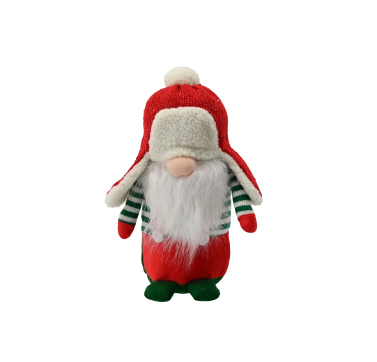 A klasszikus színpáros, a csíkos ujjak és a fehér szakáll kiemelik a karácsony varázsát bármely enteriőrben.