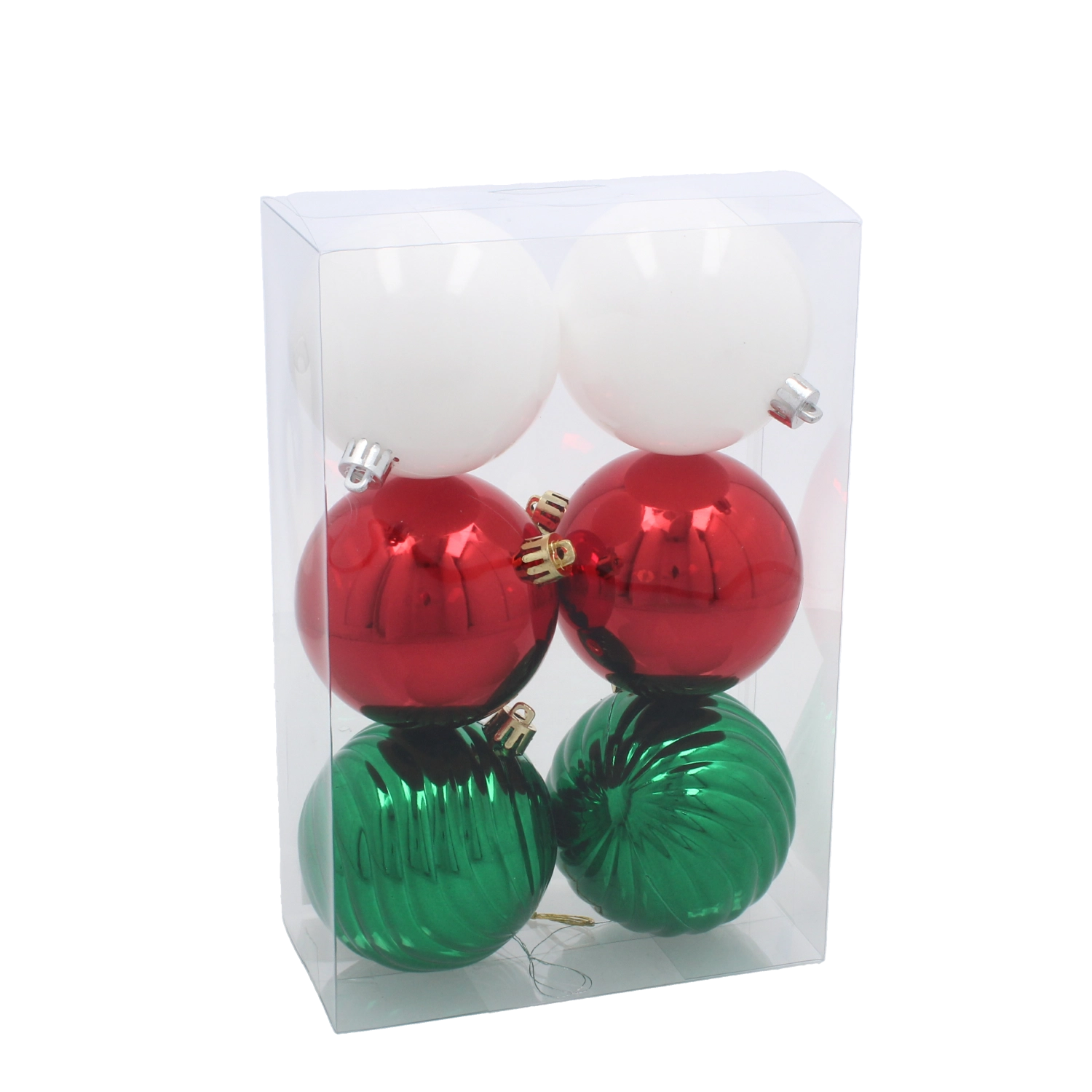 8 cm-es karácsonyi gömbszett – piros, zöld és fehér, 6 db