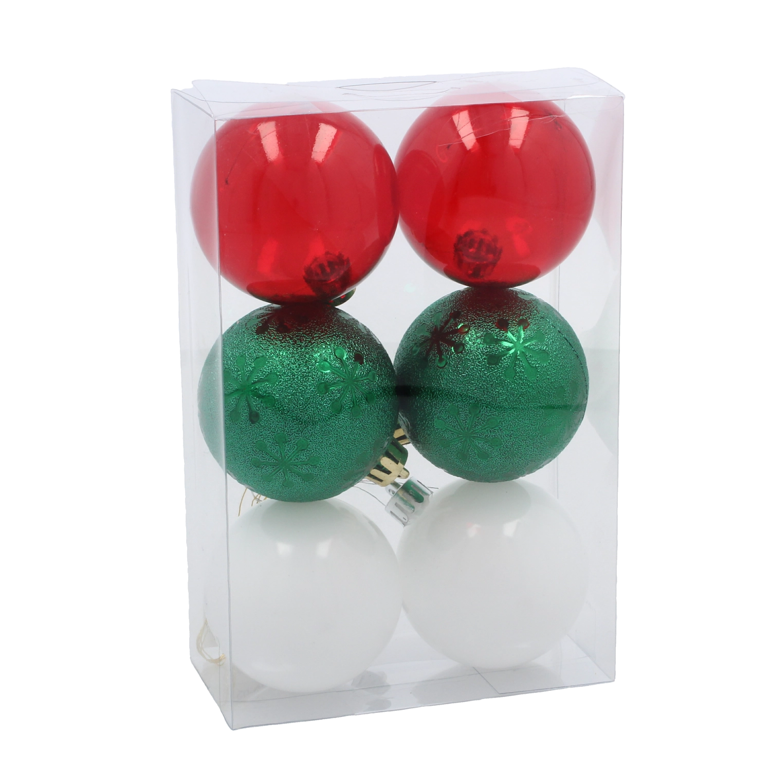 6 cm-es karácsonyi gömbszett – piros, zöld és fehér (6 db)