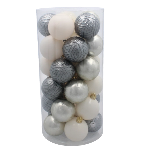 A 30 darab dísznek köszönhetően könnyedén egységes színvilágot teremthet az egész fán. A különböző felületkialakítások – matt, fényes és domború – fény- és textúrajátékot hoznak létre, amely magasabb szintre emeli az ünnepi hangulatot.