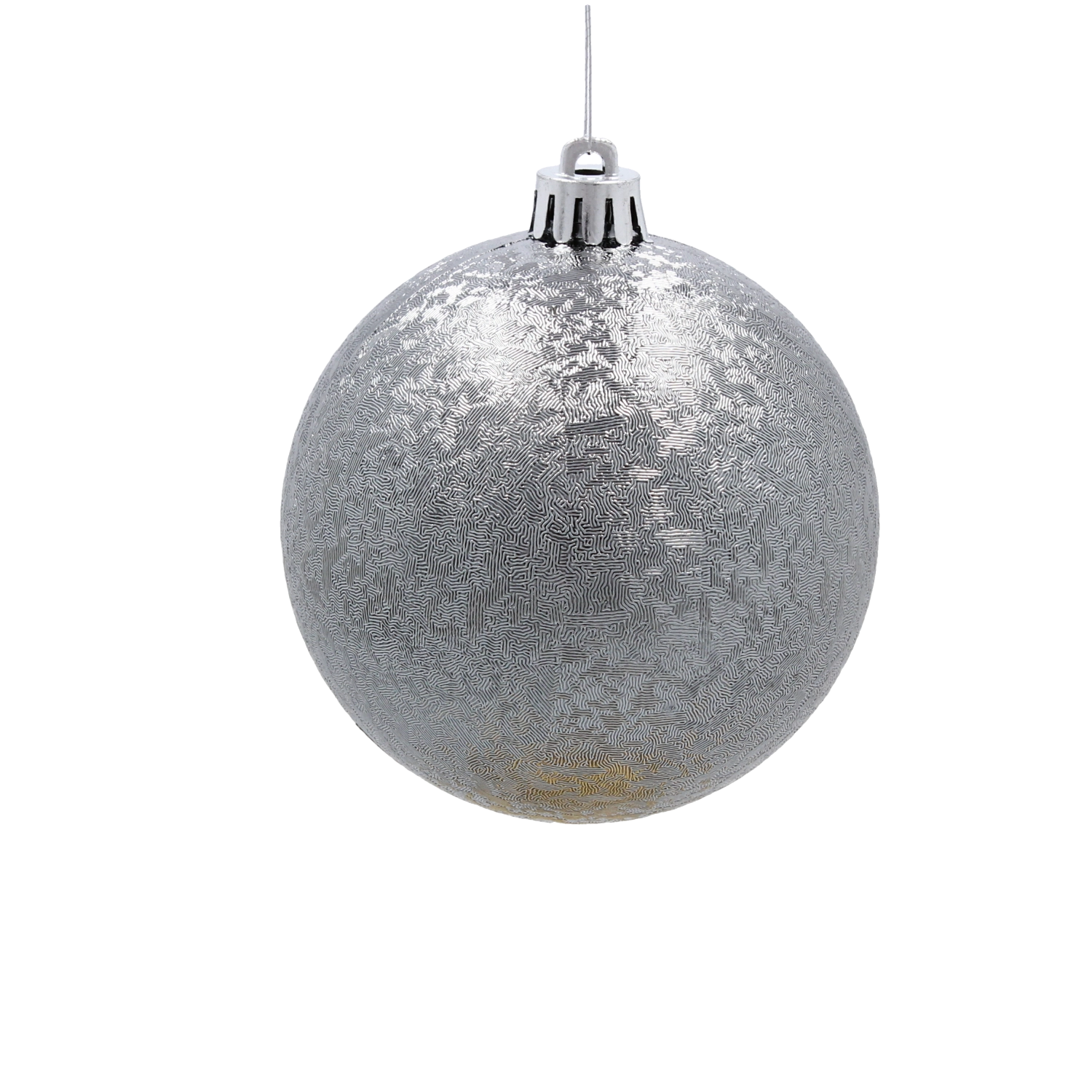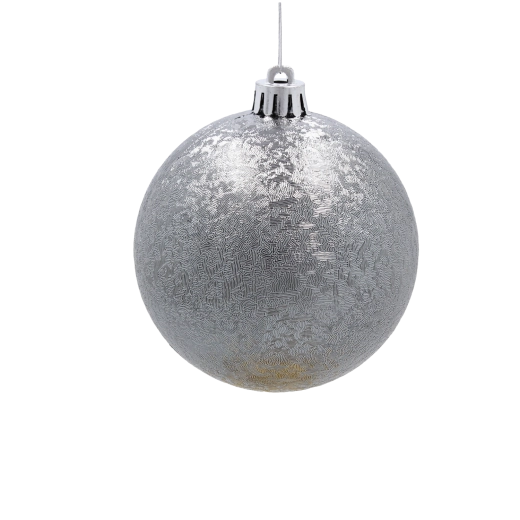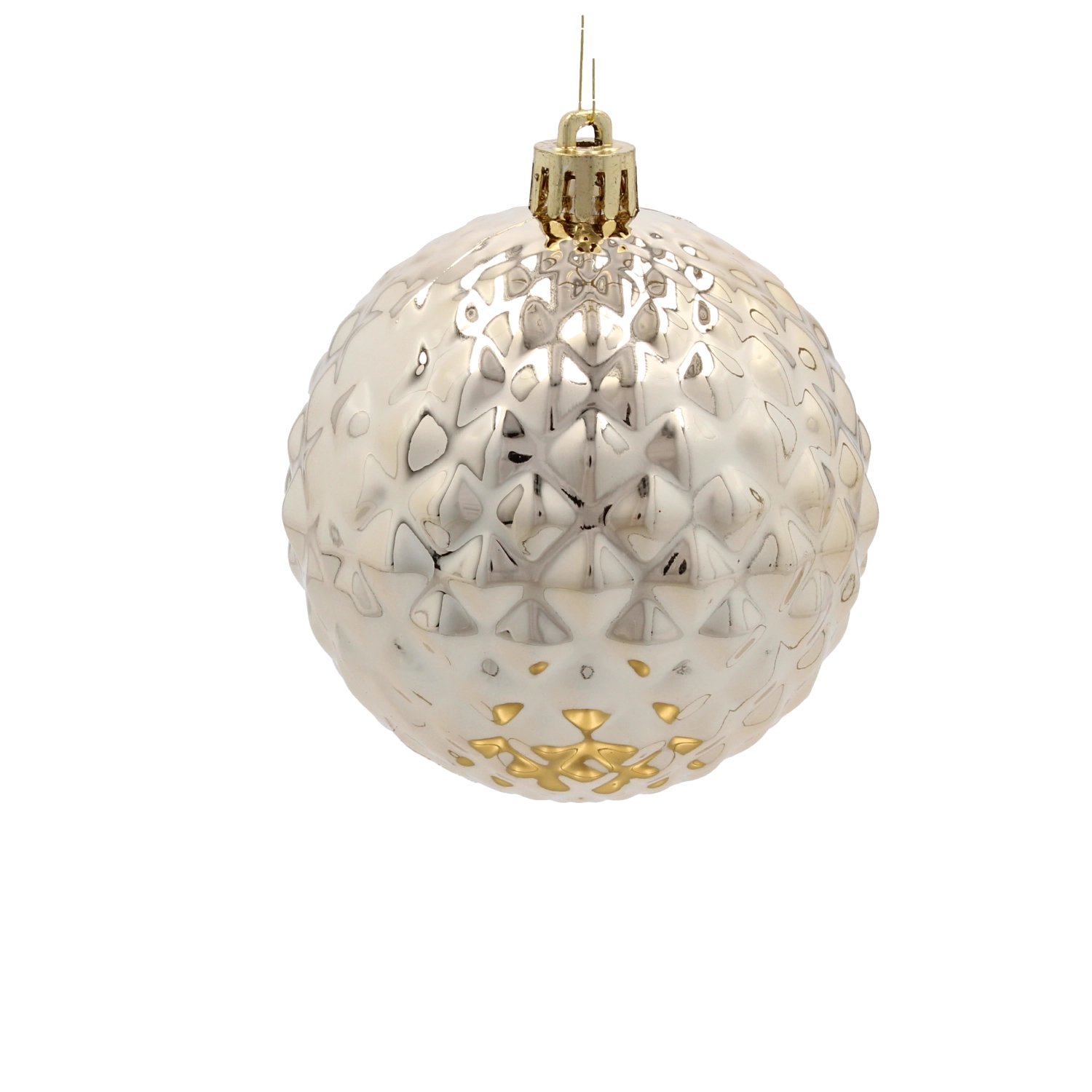Elegáns, hat darabos üvegdísz-készlet 8 cm átmérővel pezsgő, ezüst és fehér árnyalatokban, amely kifinomult és harmonikus megjelenést kölcsönöz a fának. Precíz kidolgozás, hosszú élettartam és egységes méret a stílusos karácsonyi dekoráció egyszerű összeállításához, hagyományos és modern enteriőrökben egyaránt.