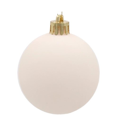 A matt fehér gömb visszafogott eleganciát kölcsönöz a dekorációnak, és remekül kiegyensúlyozza a készlet fényesebb darabjait.