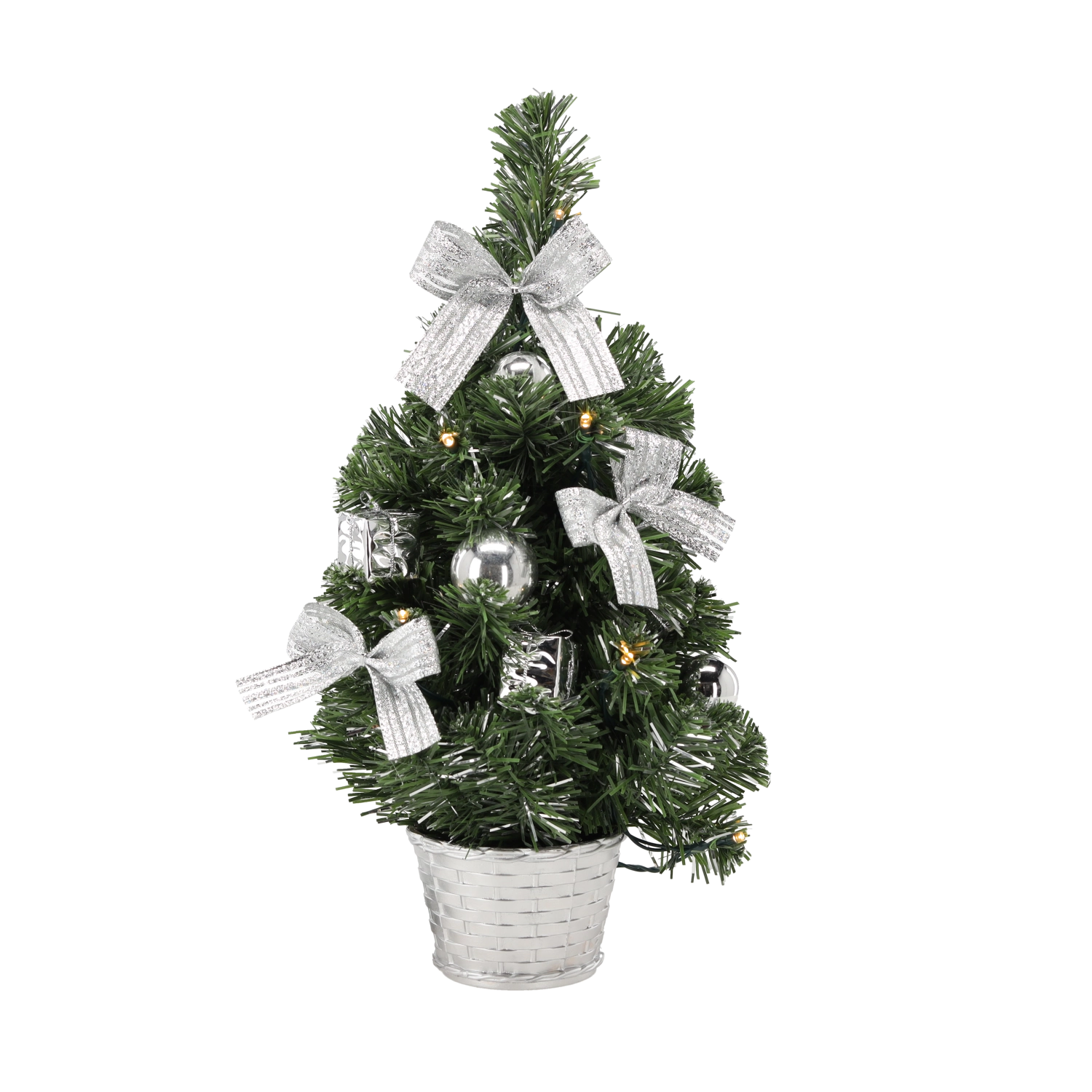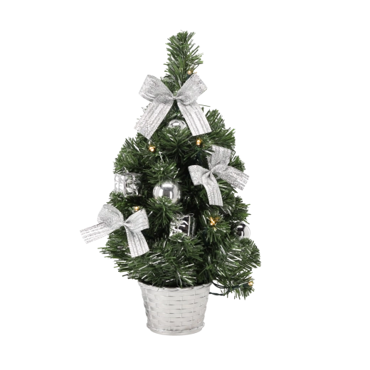 Kompakt karácsonyfa 10 LED-del, 40 cm magas, amely beragyogja otthona minden sarkát. Az előre elkészített díszítésnek és az energiatakarékos LED világításnak köszönhetően ideális komódra, asztalra vagy polcra. Különböző színváltozatokban elérhető, hogy könnyen illeszkedjen a belső térhez.