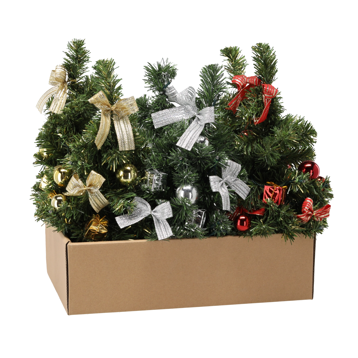 A fa előre díszített masnikkal és gömbökkel különböző színekben, így nem igényel további dekorálást. Az energiatakarékos LED diódák hosszú élettartamot és alacsony fogyasztást biztosítanak.