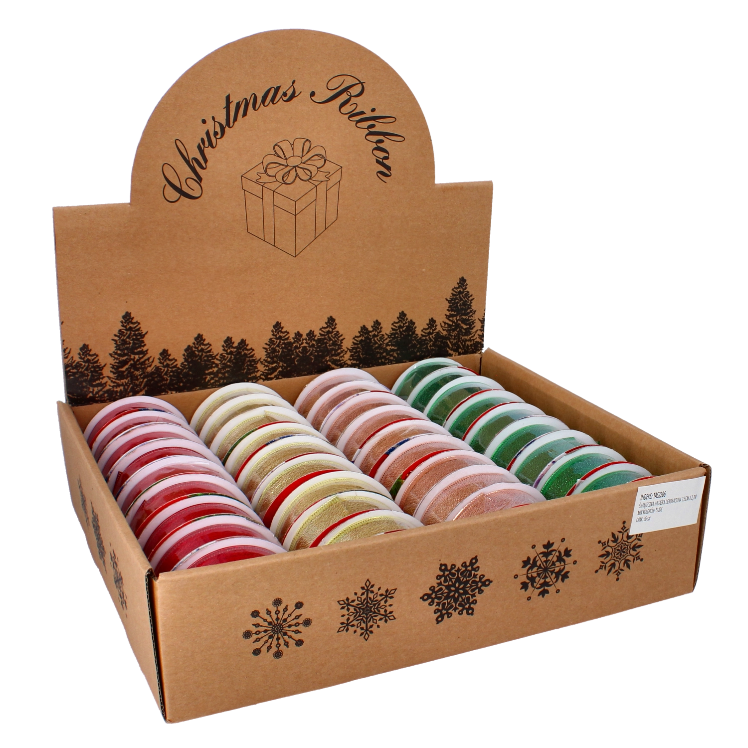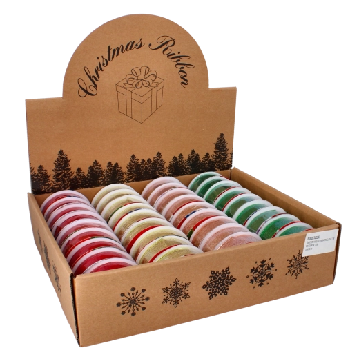 Válasszon különböző, karácsonyi motívumokkal díszített színváltozatok közül, és hangolja össze díszítését egységes stílusban. A 2,7 m hossz ideális több masnihoz vagy egy nagyobb projekthez, míg a 2,5 cm szélesség kiegyensúlyozott arányt ad a finomság és a feltűnőség között.