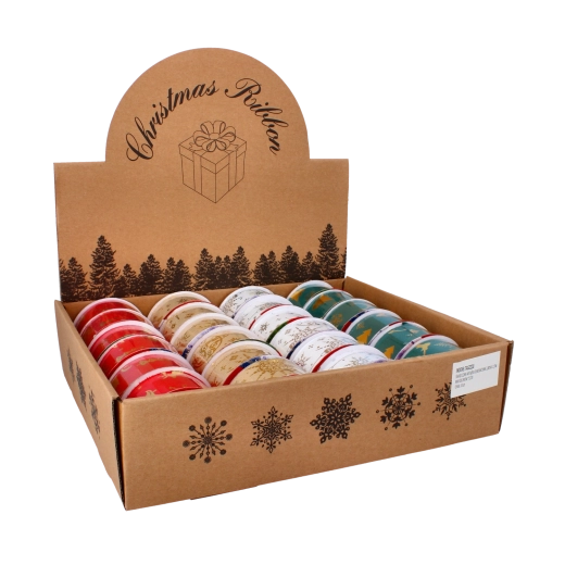 Stílusos karácsonyi szalag 3,8 cm szélességgel és 2,7 m hosszúsággal, ideális ajándékcsomagoláshoz és ünnepi dekorációhoz. A színes és feltűnő mintáknak köszönhetően egyedi karaktert ad csomagjainak, és a megfelelő papírral eredeti kompozíciót alkothat. Színkeverékben kapható, így bármilyen dekorációs stílushoz könnyen igazítható.