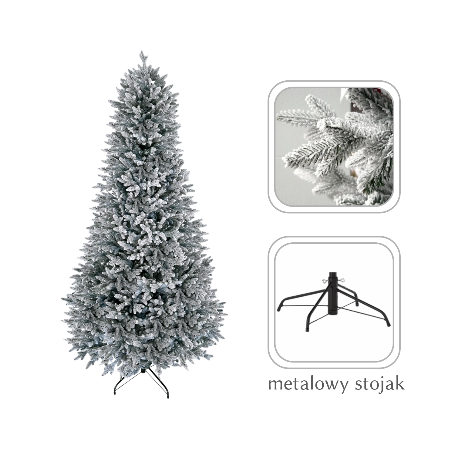 A fa gyorsan és könnyen összeszerelhető, strapabíró, kevés karbantartást igényel, és a minőségi anyagnak köszönhetően sok szezonon át megőrzi formáját és színét. A zöld tűlevelek fehér “hóval” élethű téli fenyő hatását keltik.