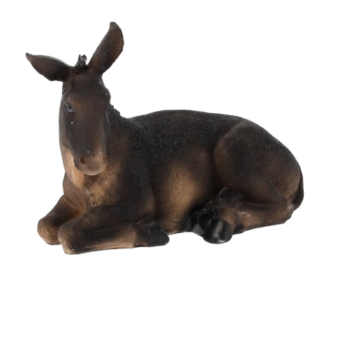 A fekvő szamár szépen kiegészíti a Jézus születését ábrázoló jelenetet, és békét, hitelességet visz az ünnepi dekorációba.