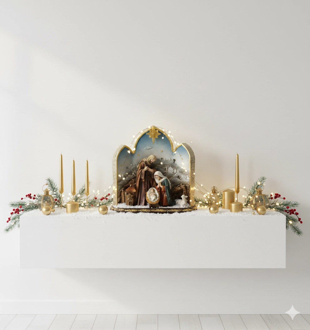Vigye otthonába a karácsony varázsát az elegáns betlehem figurával, melyben a Szent Család katedrális ívben kap helyet. A beépített LED csillag meleg, otthonos fényt áraszt, és kiemeli a dekoráció finom részleteit. Ideális asztali karácsonyi dísz a nappaliba, komódra vagy ablakpárkányra.
