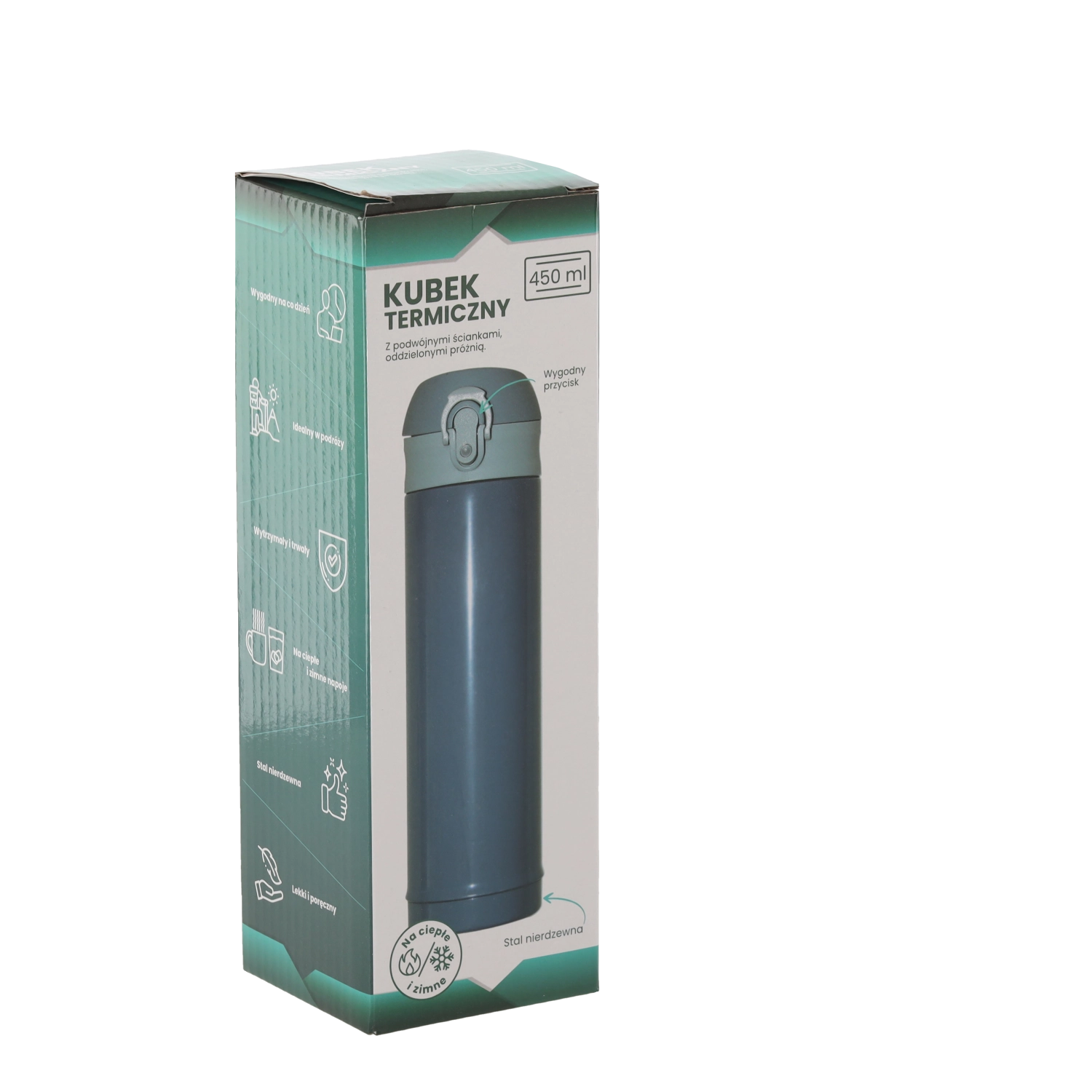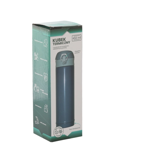 A praktikus, 450 ml-es termobögre a modern dizájnt kiváló szigeteléssel ötvözi. A vákuumos rozsdamentes acél szerkezet akár 6 órán át stabil hőmérsékleten tartja az italt, így a kávét, teát vagy vizet a nap bármely szakában élvezheti. A matt felület kellemes tapintású és ellenáll az ujjlenyomatoknak.