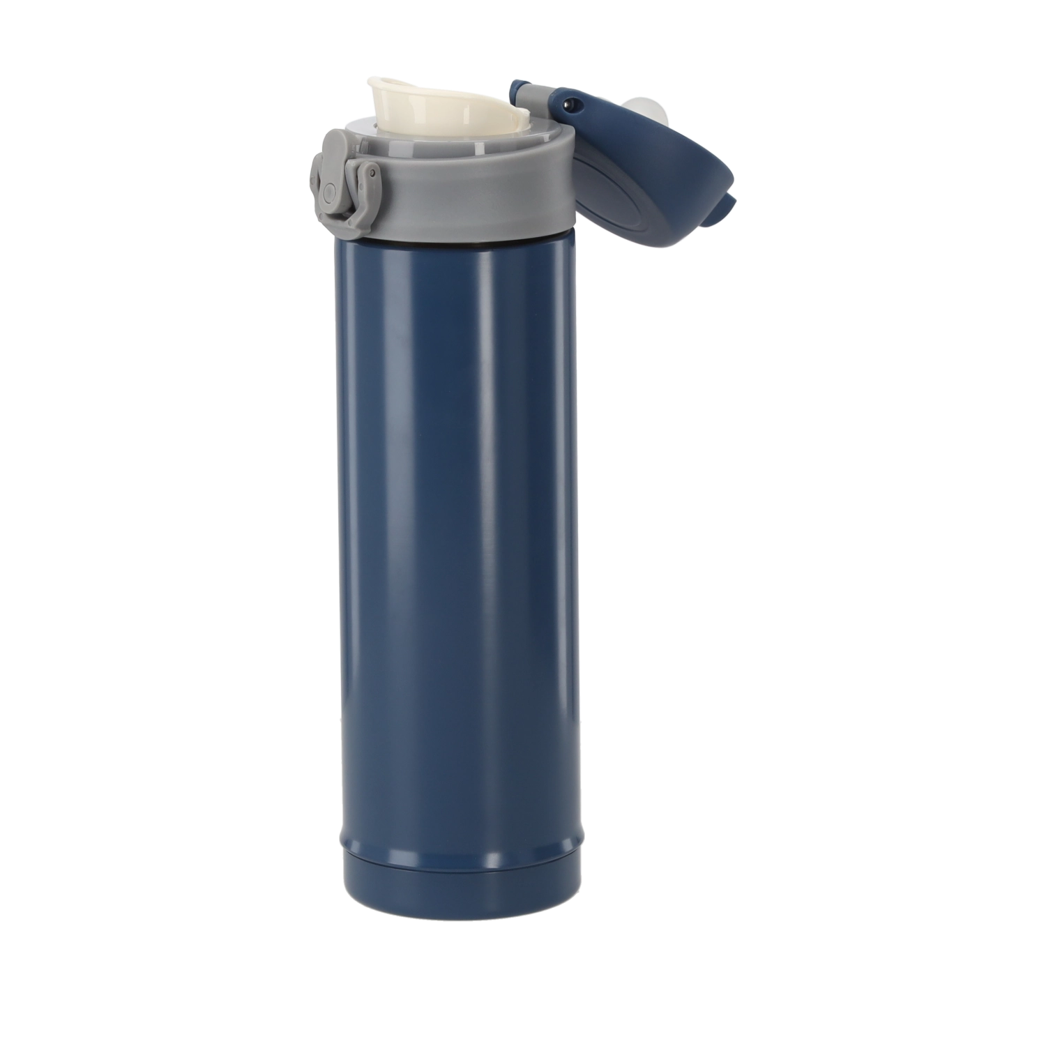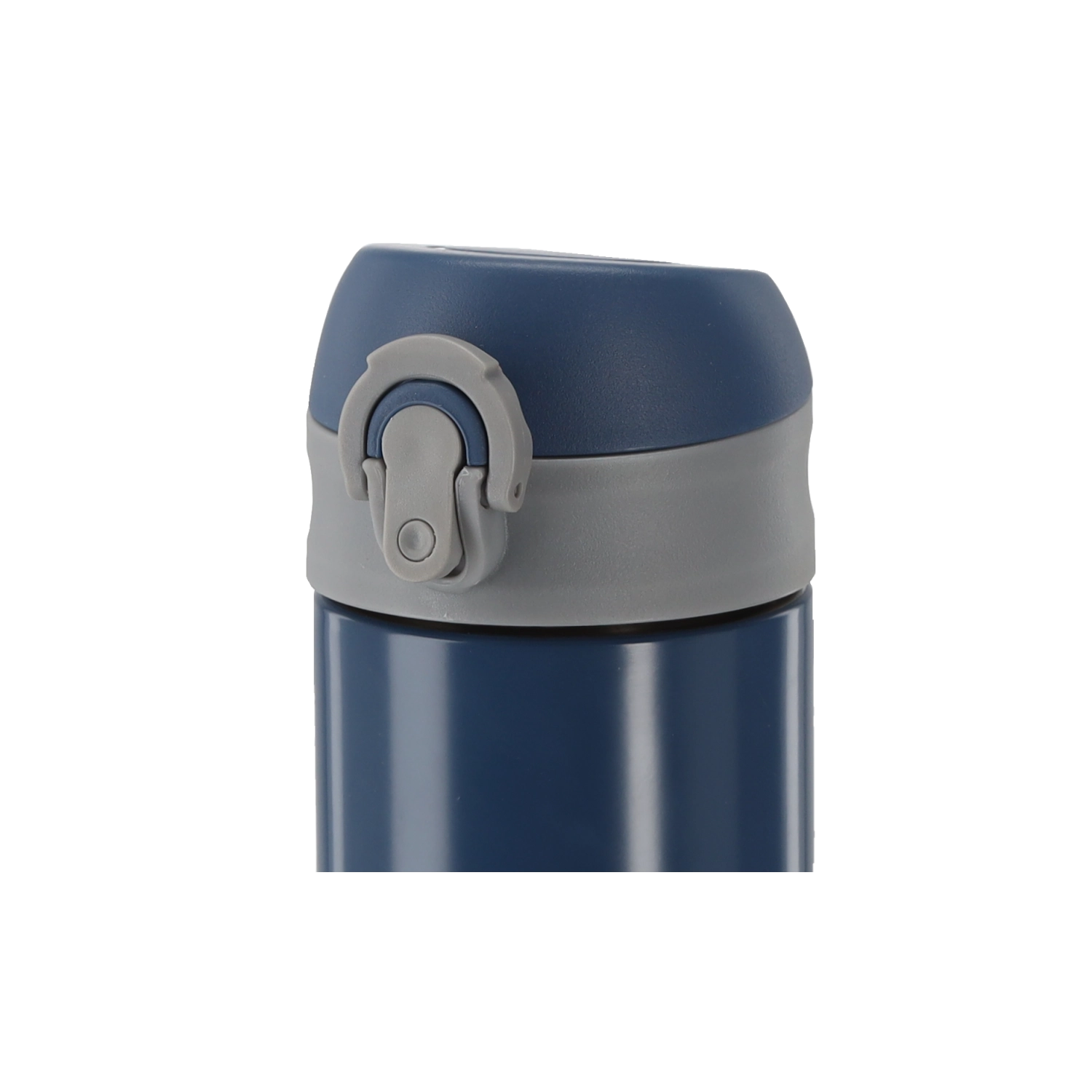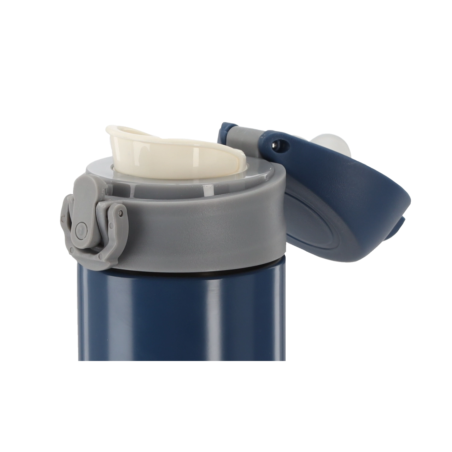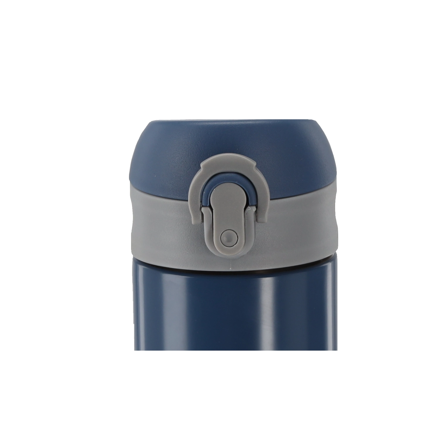 A tartós PP műanyagból készült, nyomógombos tető kényelmes, egykezes kezelést biztosít, és csökkenti a kilöttyenést séta vagy utazás közben. Karcsú formájának (Ø 6,5 cm) köszönhetően a legtöbb autós és hátizsákos pohártartóba illeszkedik.