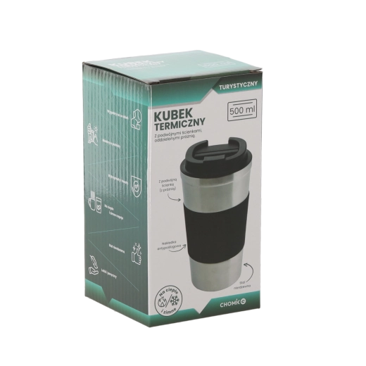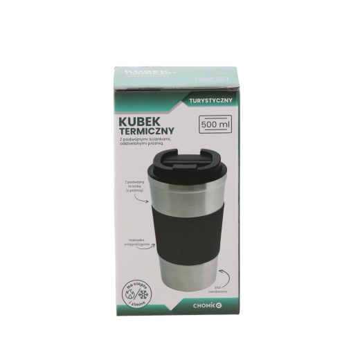 Praktikus, 500 ml-es rozsdamentes acél termoszbögre, amely kényelmesen gondoskodik italairól útközben. A duplafalú vákuumszerkezetnek és a csúszásgátló szilikon markolatnak köszönhetően kellemes a fogása és jobb a szigetelése. A PP flip tető minimalizálja a kilöttyenést, a bögre mosogatógépben mosható, és akár 4 órán át tartja a hőmérsékletet.
