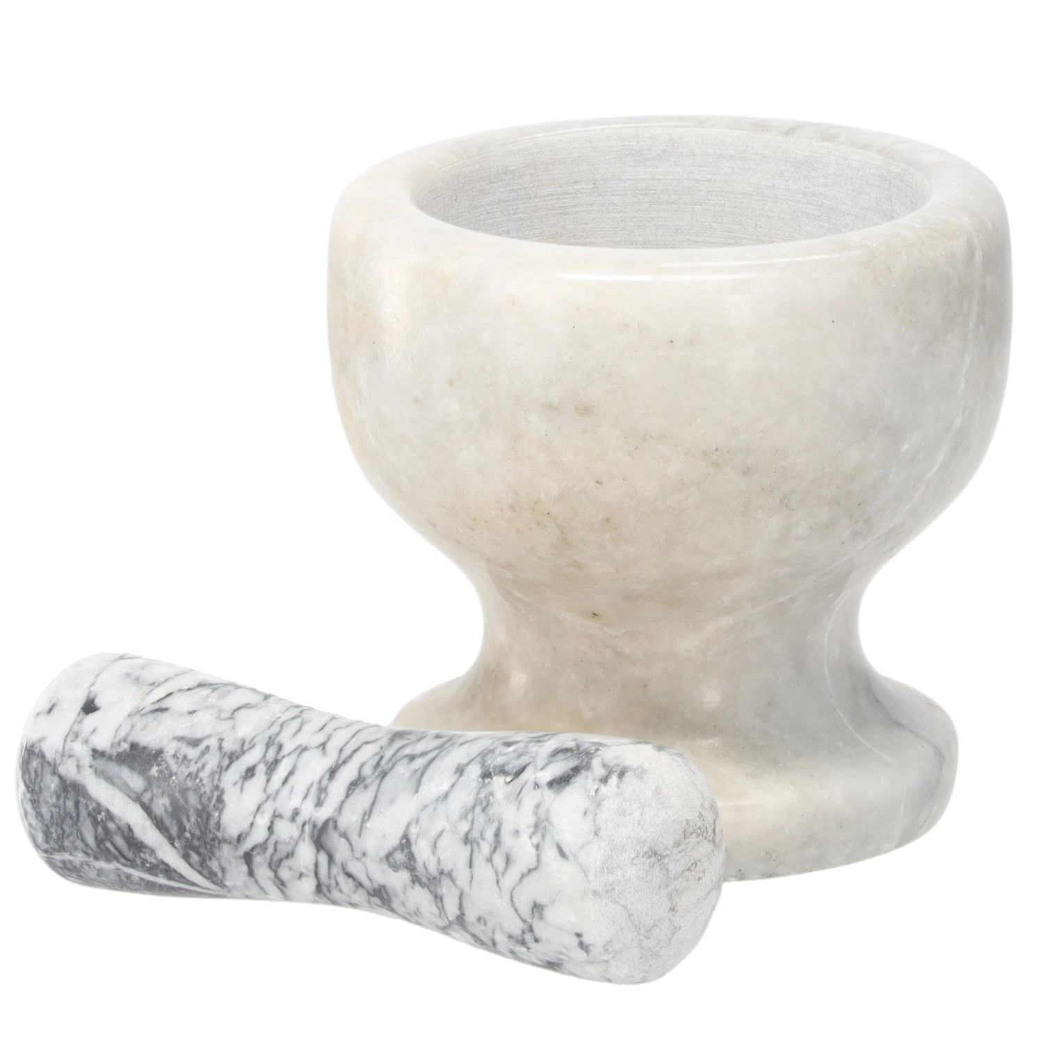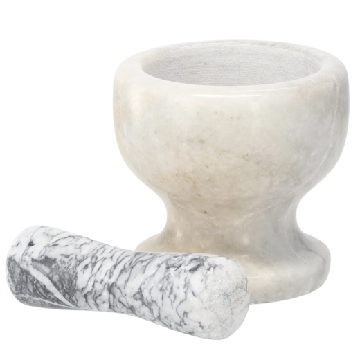 Fedezze fel a lelkiismeretes kézi zúzás varázsát minőségi, időtlen fehér márvány mozsárral. A természetes kő nehéz és stabil, így munka közben a mozsár nem csúszik el, és tökéletes irányítást ad az összetevők állaga felett.