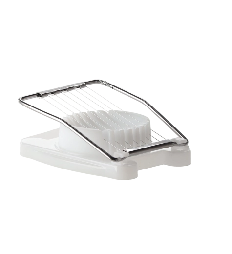 Tegye játékossá a hidegkonyhás előkészítést. A masszív műanyag házzal és rozsdamentes acél húrokkal ellátott tojásszeletelő tiszta, egyforma szeleteket biztosít a tojások összenyomása nélkül. Ideális a mindennapi használatra, és kompakt méreteinek köszönhetően bármelyik fiókba belefér.
