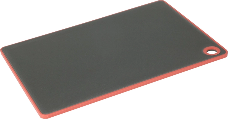 Higiénikus felülete nem nyeli el a szagokat és a folyadékokat, könnyen tisztítható, és mosogatógépben mosható. A sarokban található praktikus nyílásnak köszönhetően a deszka könnyen felakasztható, így mindig kéznél van. A semleges szürke szín bármely konyhába illik, a perem pedig vonzó színváltozatokban érhető el.