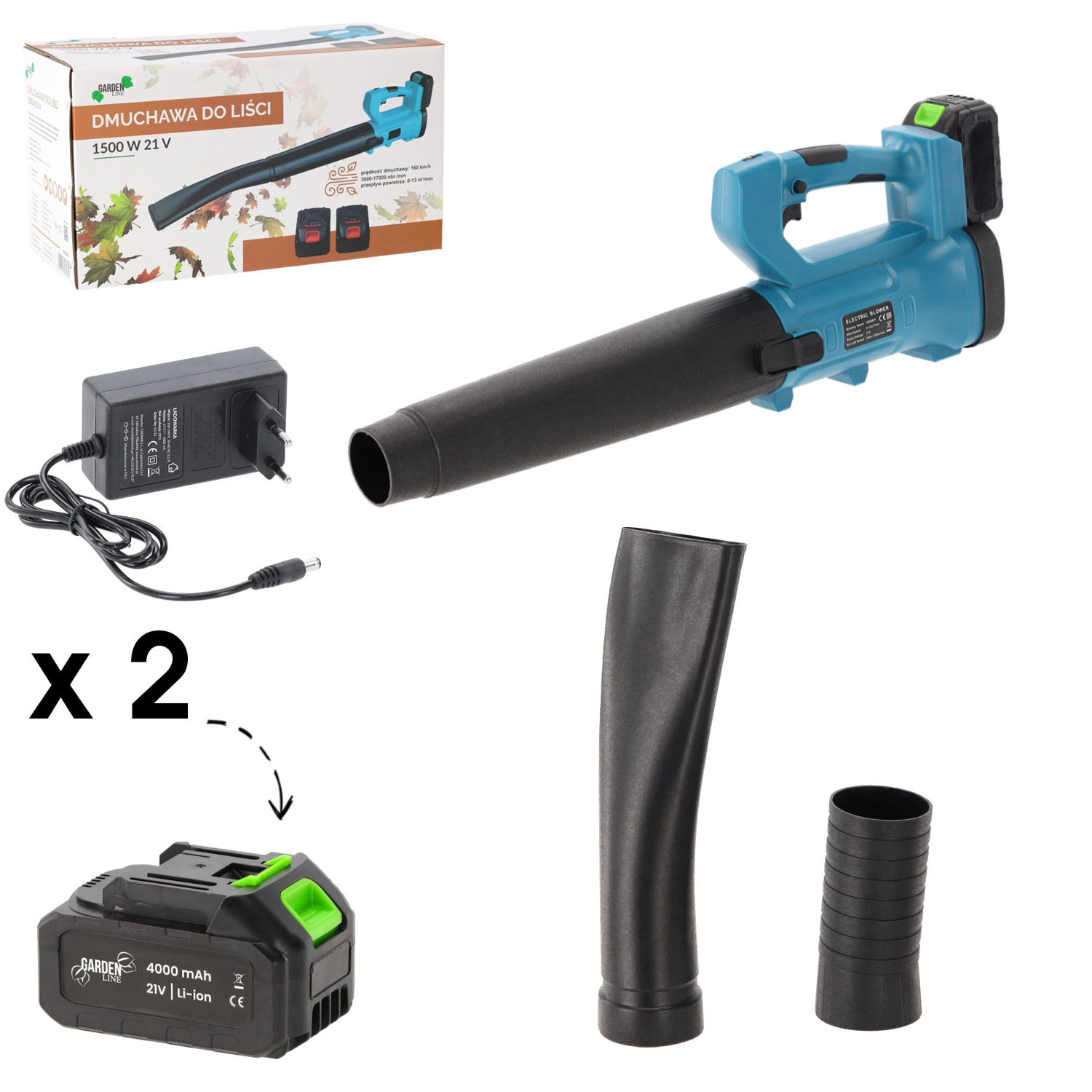 - Lombfúvó, 2 akkumulátor, töltő, fúvóka készlet